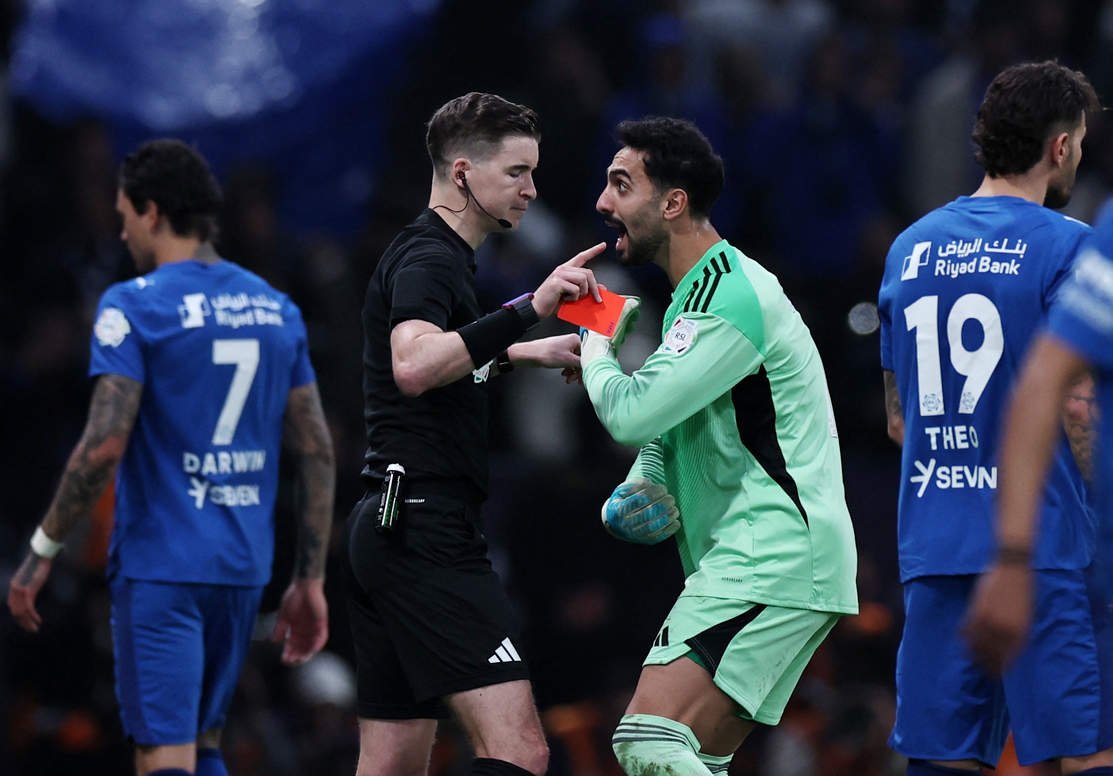 胜利1-3新月的比赛中,胜利门将阿奇迪本场比赛第60分钟因肘击内维斯直红被罚下。据罗马诺报道,因为阿奇迪染红,利雅得胜利已叫停了另一名门将本托加盟热那亚的转会。
