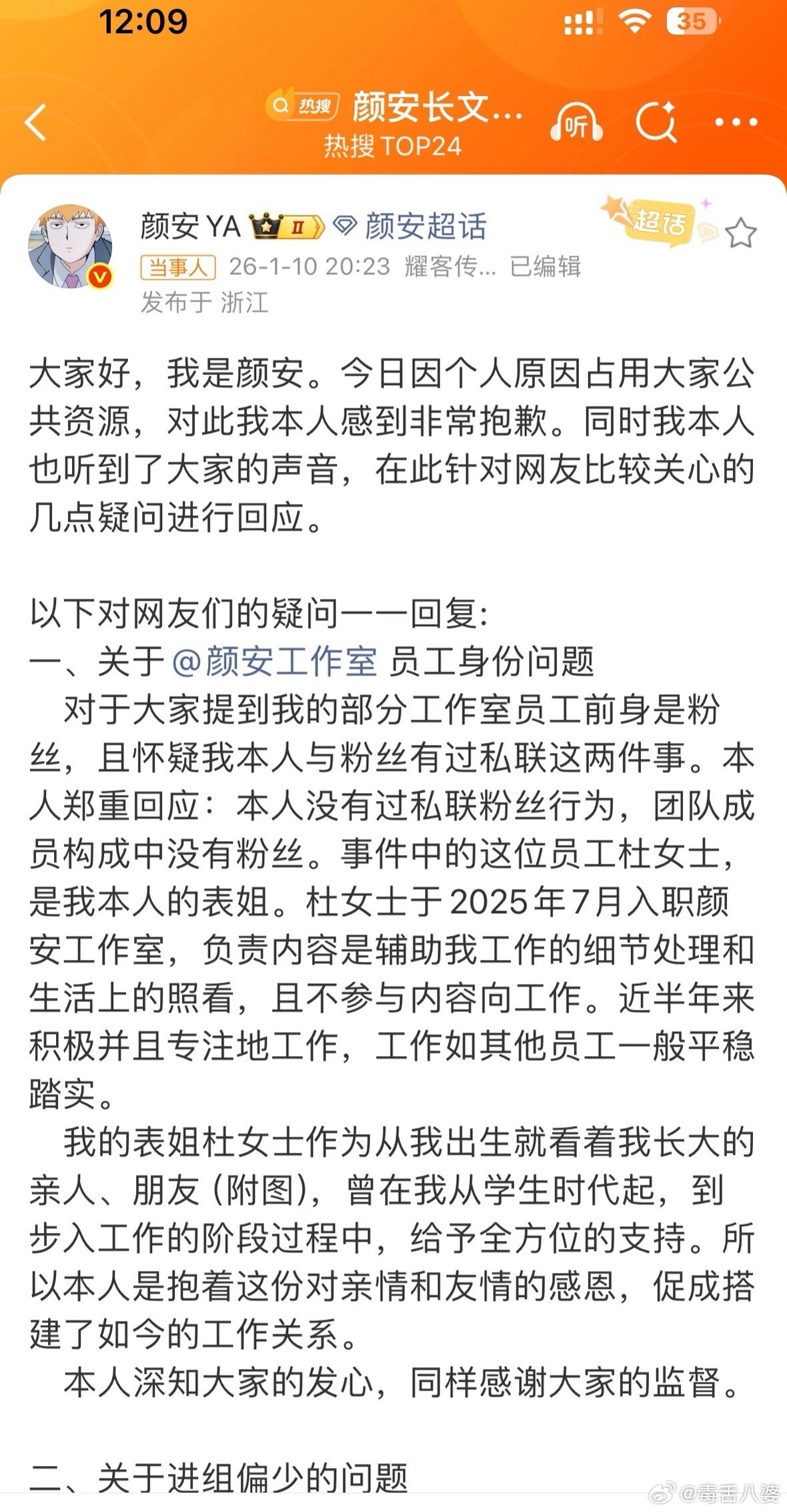 原来内娱男明星是可以有嘴回应啊年度爽文!看颜安一条条反驳质疑也太解压了。尤其是解释“为什么减少公共互动”那里,因为礼物里发现过定位器,车站差点踩踏…这谁听了不头皮发麻?保护自己太有必要了,支持这种清晰又有担当的回应!