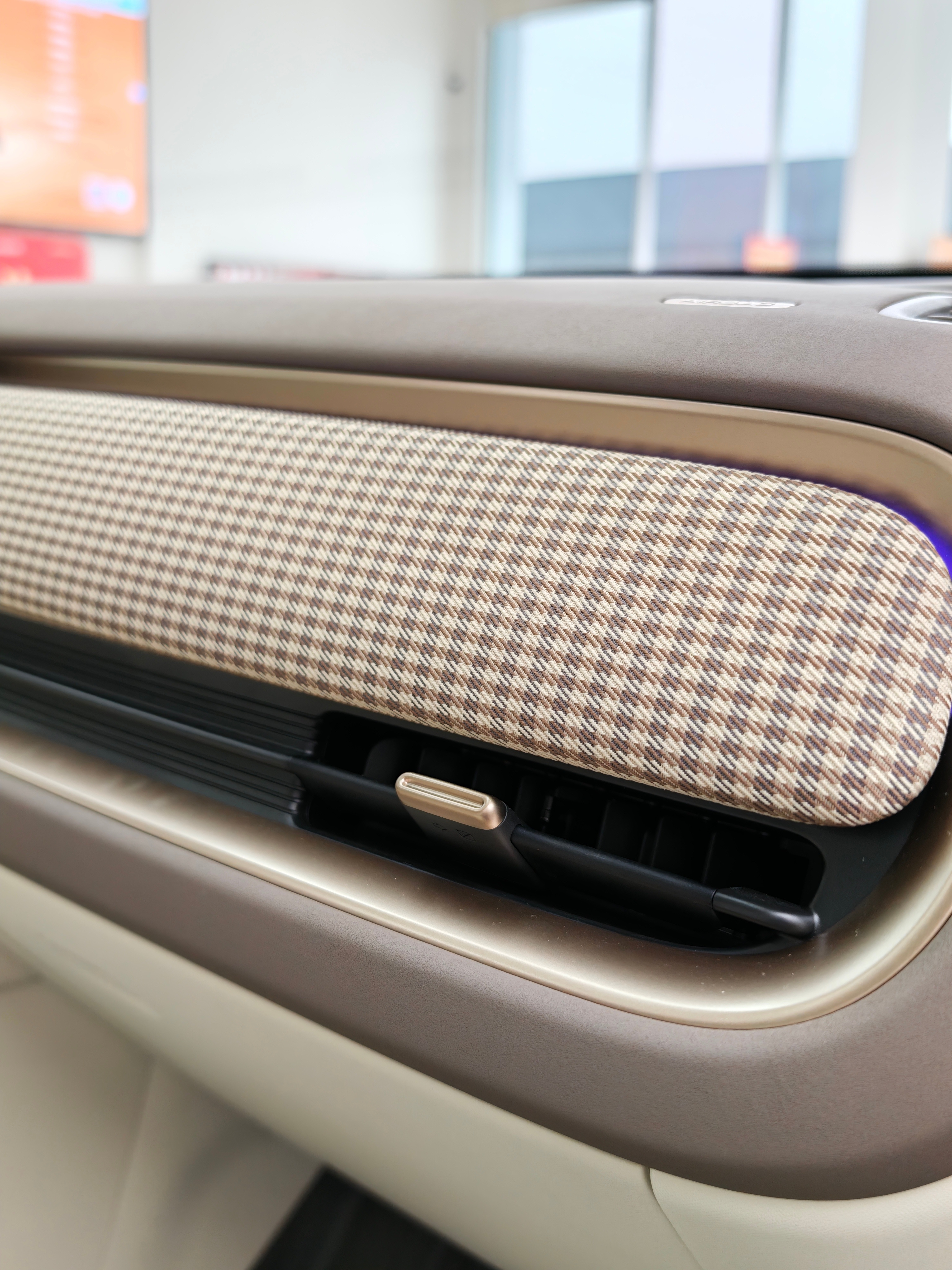 昨天去长城欧拉看欧拉 5,很喜欢这个类似保时捷千鸟格布艺的设计。家里的破烂甲壳虫