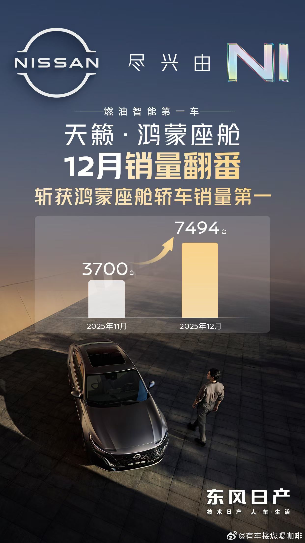 行业新实力,满电再起飞!乘联会最新数据出炉,东风日产交出2025硬核成绩单:🔹 N6斩获合资插混销量第一 🔹 天籁·鸿蒙座舱12月销量环比翻番 🔹 轩逸销量累计32万,连续六年燃油销量冠军感谢1700万份热爱与信赖,从燃油引领者,到智电新势力,我们加速前行!东风日产 行业新实力 满电起飞 感谢1700万 新能源转型