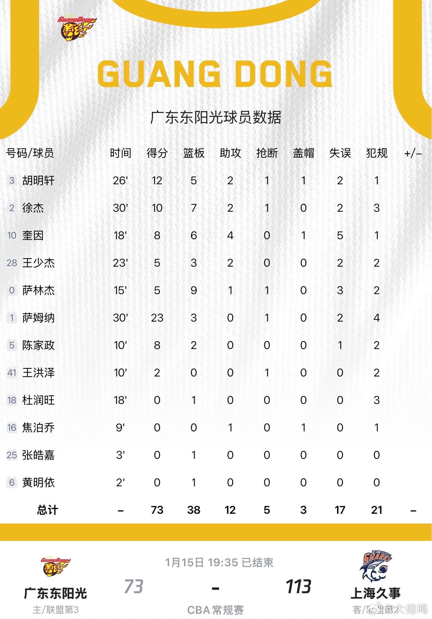 广东男篮vs上海男篮很少看到广东在主场输那么多,40分啊,根本没脾气那种,球迷没喊退票已经很给面子了……上海确实是今年夺冠大热,但广东也是啊,也有竞争力,不至于输那么多吧真心没眼看啊!赶紧调整吧,这场才3人得分上双,这不是广东队该有的发挥,继续加油吧,不能就这样放弃。鸣聊体育