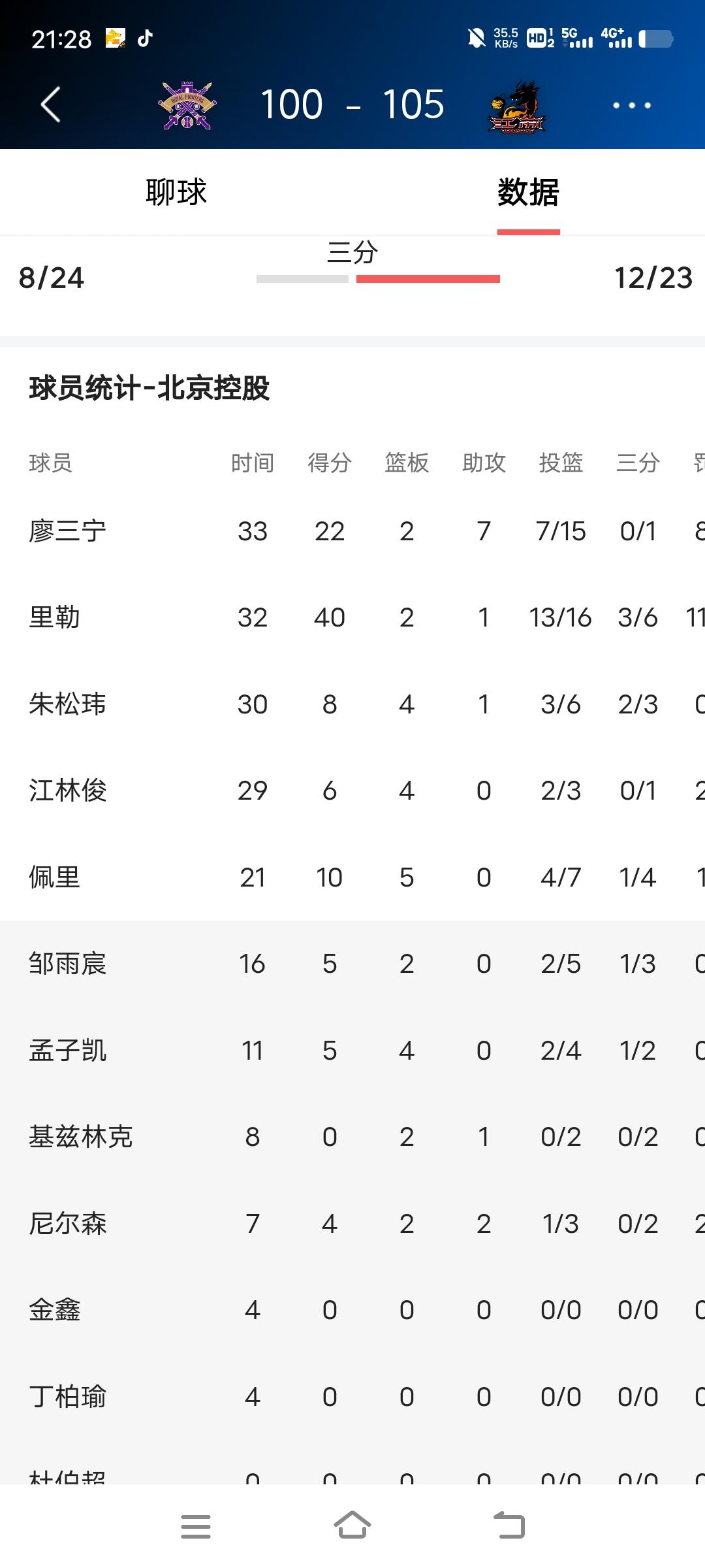 老表相遇,还是老六笑到了最后,率队取得第二场胜利!CBA常规赛第15轮,江苏男篮客场挑战北京北控,广西老表庞峥麟与廖三宁迎来正面对决。最终,几乎打满全场的庞峥麟率领江苏男篮以105:100险胜北京北控,取得赛季第二场胜利。此役,庞峥麟与廖三宁上演了精彩的对决,两人的数据对比如下: 庞峥麟,出战38分钟,12投5中,三分3中1,得到14分3篮板12助攻; 廖三宁,出战15投7中,三分3中0,得到22分2篮板7助攻。 江苏男篮所取得的两场胜利,庞峥麟都有出色的表现,当然今晚的比赛是一场团队的胜利,双外援、刘正清等人都打得非常出色。