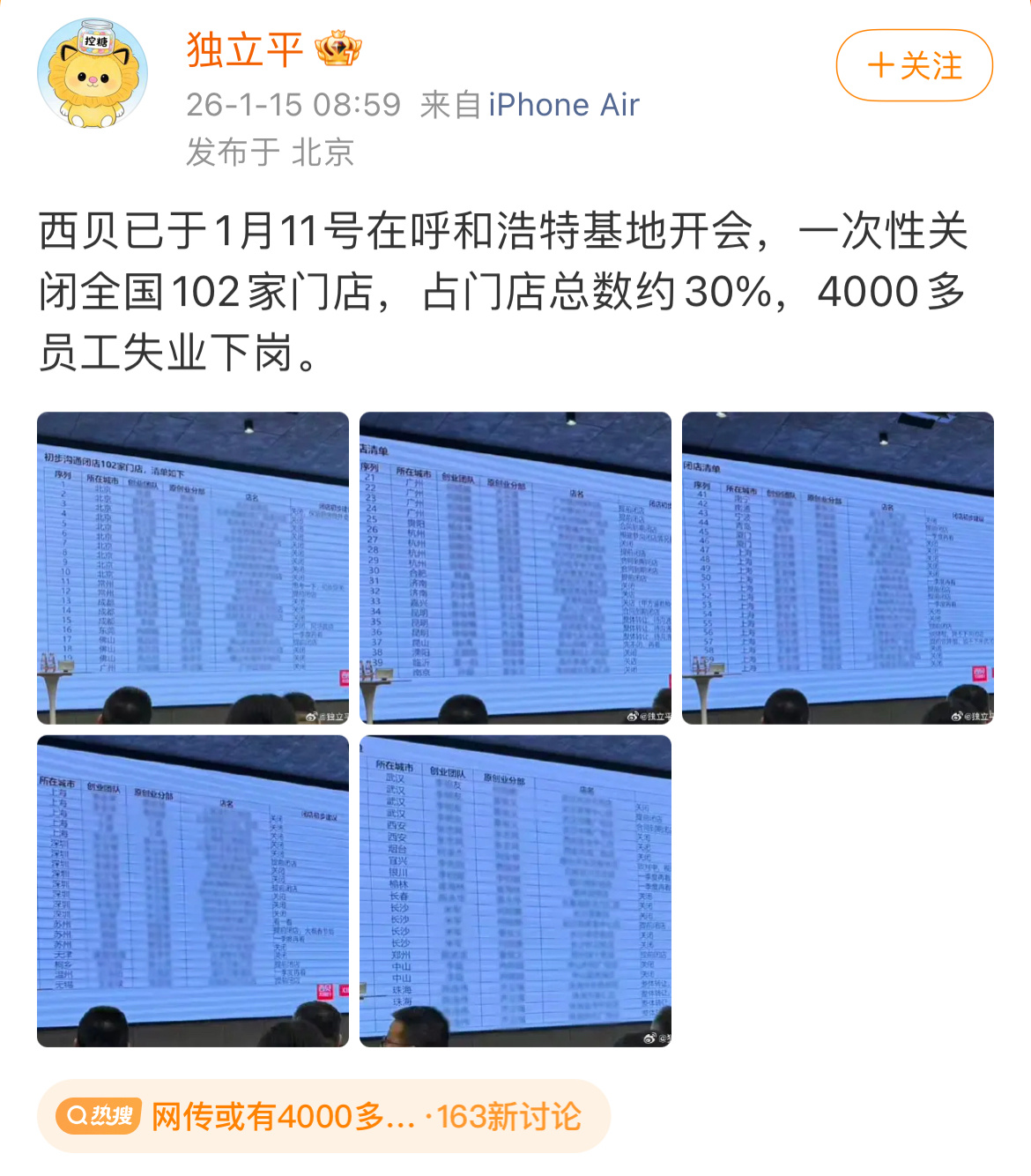 网传西贝规划关闭102家门店。西贝餐饮创始人贾国龙在朋友圈发文回应称:截图信息基本是准确的,西贝门店从来不是预制菜,无论按照国家定义还是现实生活常识,被网红恶意混淆了。贾国龙坚称西贝门店不是预制菜贾国龙朋友圈称尽力了罗永浩 西贝