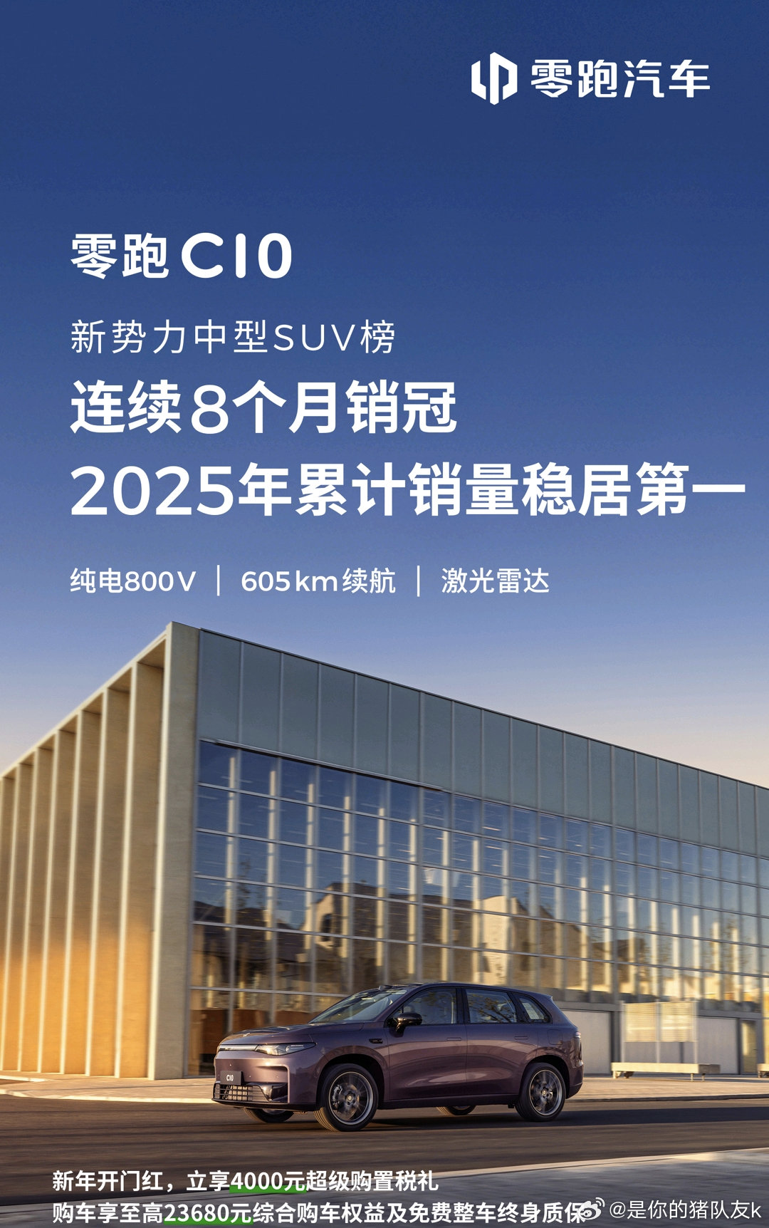 零跑双车冠亚军,车主狂喜零跑车主实名自豪!冠亚军是老百姓用钱包投出来的认可新势力中型SUV年度销量榜封神!零跑C10稳拿冠军,C11坐稳亚军,兄弟俩直接承包领奖台,这成绩不是吹的,全是咱老百姓真金白银选出来的好车!作为零跑C10 530智享版车主,打心底里觉得这销量实至名归!当初选车,身边亲戚朋友都是普通工薪族,买车就图个实在、省心、性价比,对比来对比去,还是零跑最懂咱老百姓的需求。不用花大价钱,就能买到够家用、够靠谱的车,这就是零跑最圈粉的地方。咱普通人买车,不求花里胡哨的噱头,就求日常通勤省钱、全家出行宽敞、开着踏实放心。C10陪着我通勤代步、周末带家人出游,续航扎实不打折,充电成本低到忽略不计,空间够大坐得舒服,日常用着没毛病;C11更是口碑常青树,身边好多车友都是开着省心,主动推荐给亲戚朋友,口口相传的好口碑,才攒下了实打实的销量。这年头,老百姓买车越来越理性,好不好用、值不值价,开上一阵子就知道。零跑没有铺天盖地的浮夸营销,全靠高性价比和靠谱品质,让大家心甘情愿买单。年度冠亚军的成绩单,就是千千万万普通车主的认可,是最有分量的口碑证明!能开上老百姓自己选出来的销冠车,既省钱又省心,这份骄傲真的藏不住!为零跑点赞,也为咱普通车主的好眼光点赞我的零跑生活