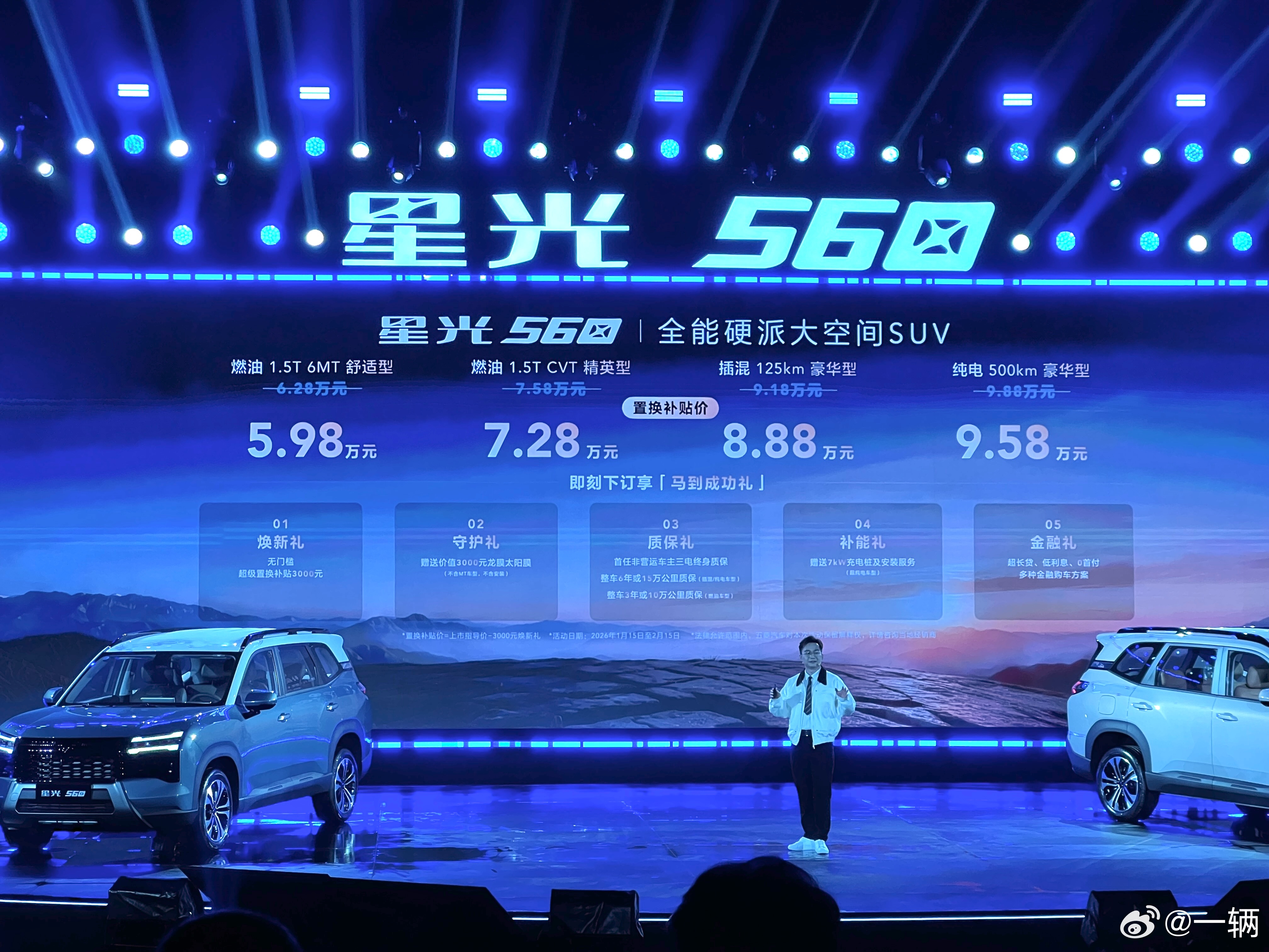 原本以为星光560的预售价已经很香,应该没有太多空间了!没想到五菱还留了一手狠的,正式上市起步价直接打到了6万以内!!!对于那些对燃油版仍有需求的用户吸引力是巨大的毕竟市面上6、7万想买到一台这么大配置这么全的SUV,的确太少了想要新能源的,8.88万有125公里的插混版,9.58万有500公里的纯电版春节前下定还有1000元限时现金优惠,这样的性价比,真佩服~星光560上市惊喜价59800起