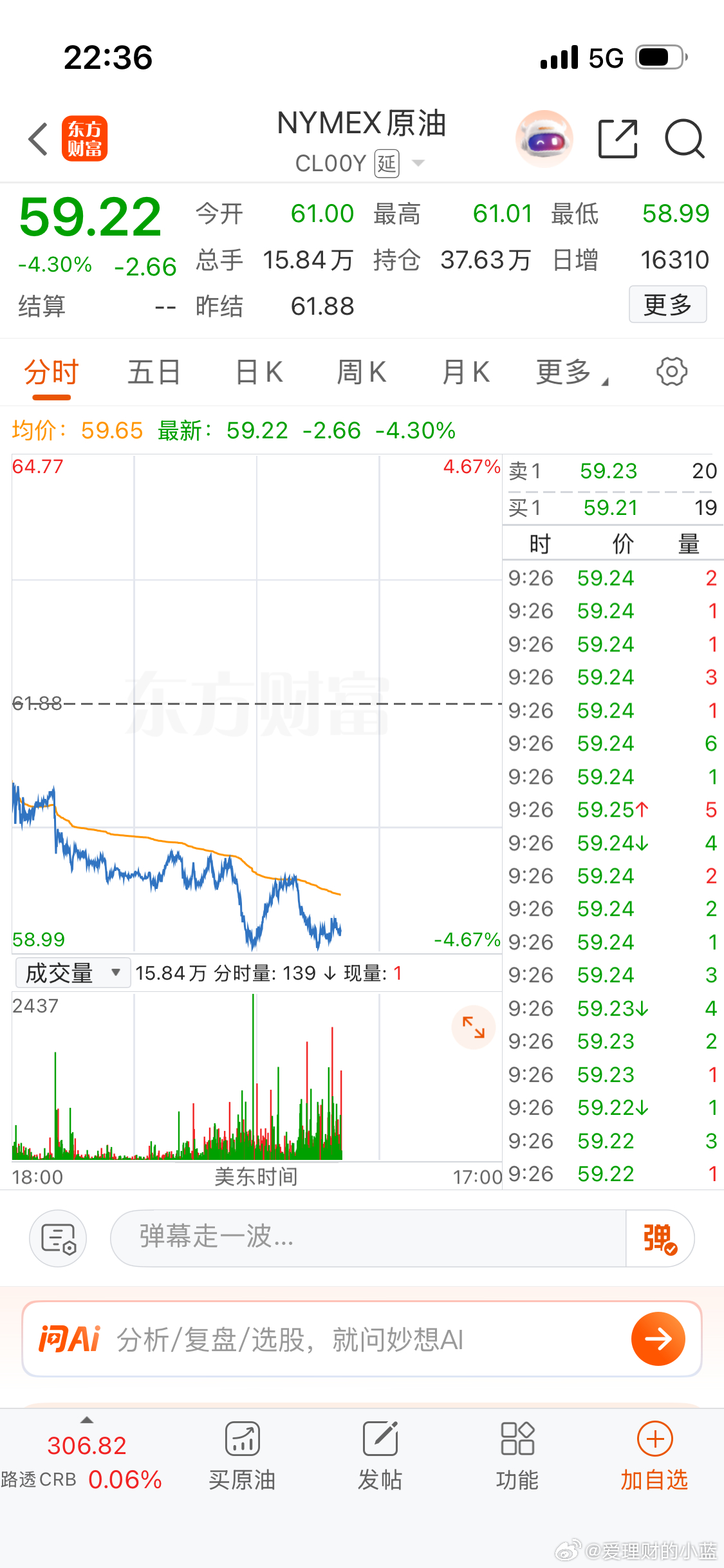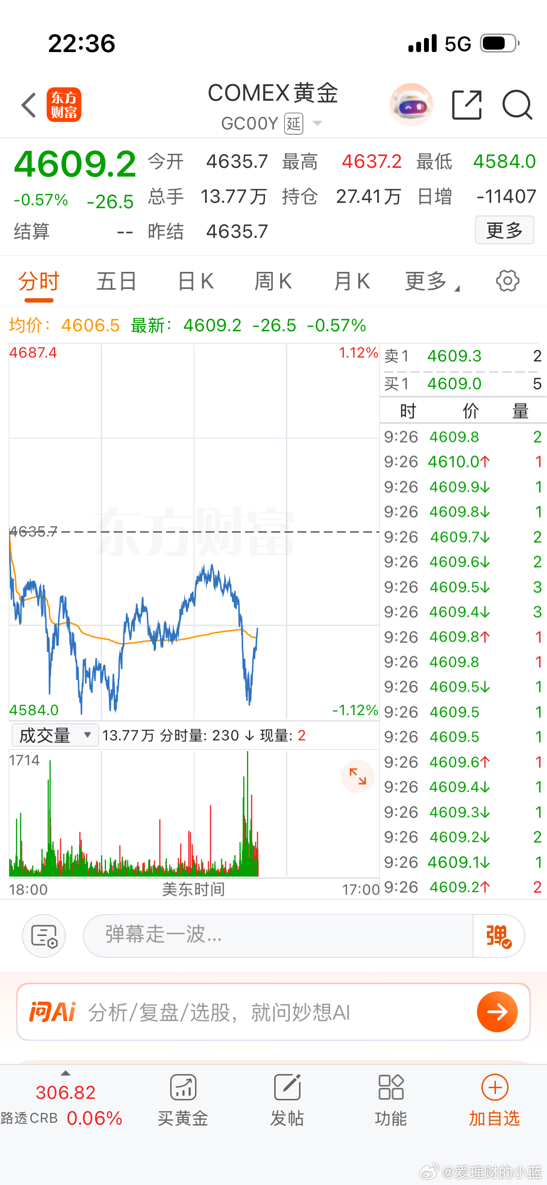 各位上市公司股东们晚上好。美股直接低开。纳斯达克 +0.77 纳斯达克100 +1.00生物科技 -0.46 金龙 -0.99黄金 -0.57 白银 -2.59原油 -4.30 油气 -2.48拜托大家不要只看不互动播报博主不好做。谢谢大家的支持。 金价彻底杀疯了