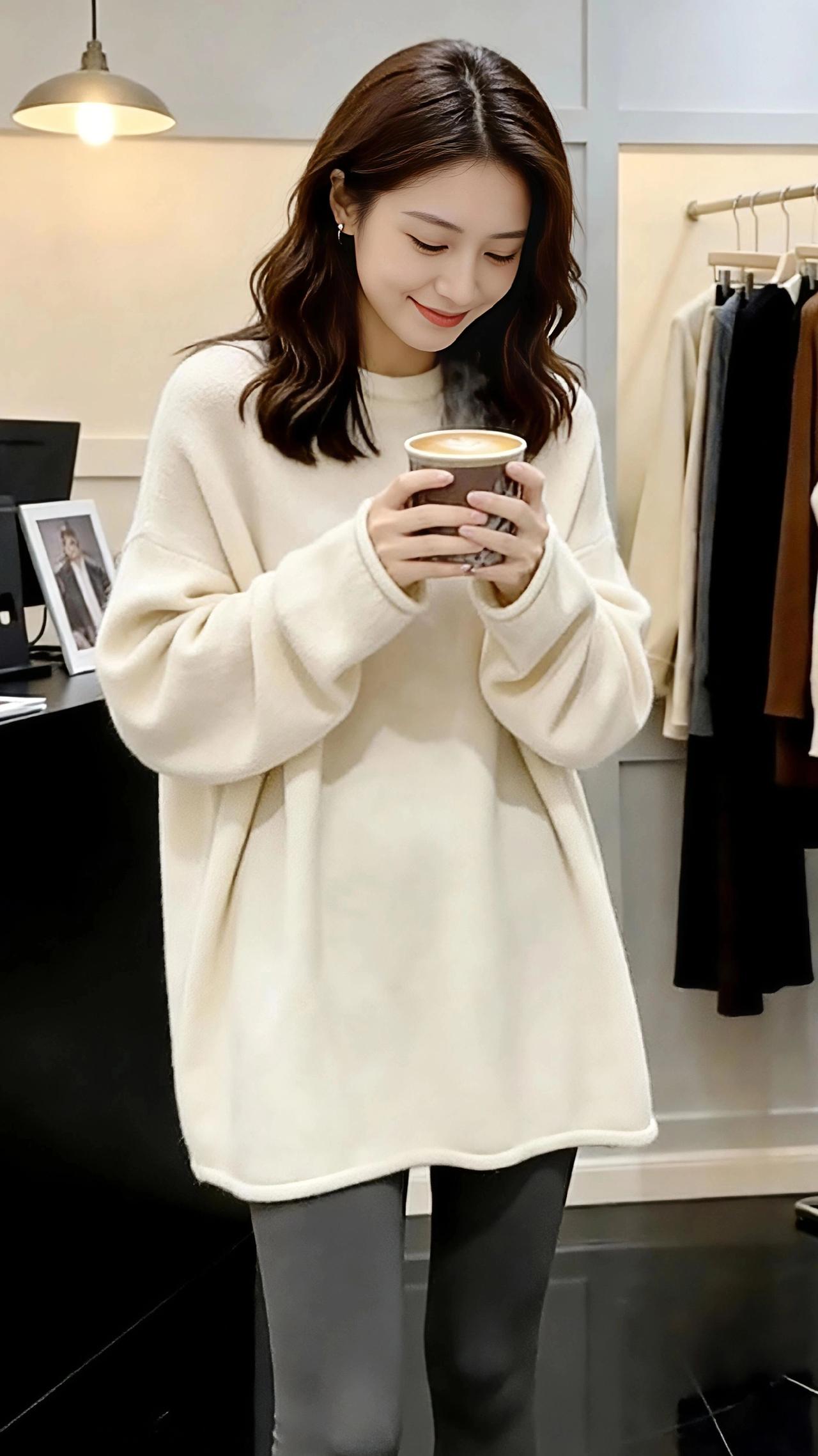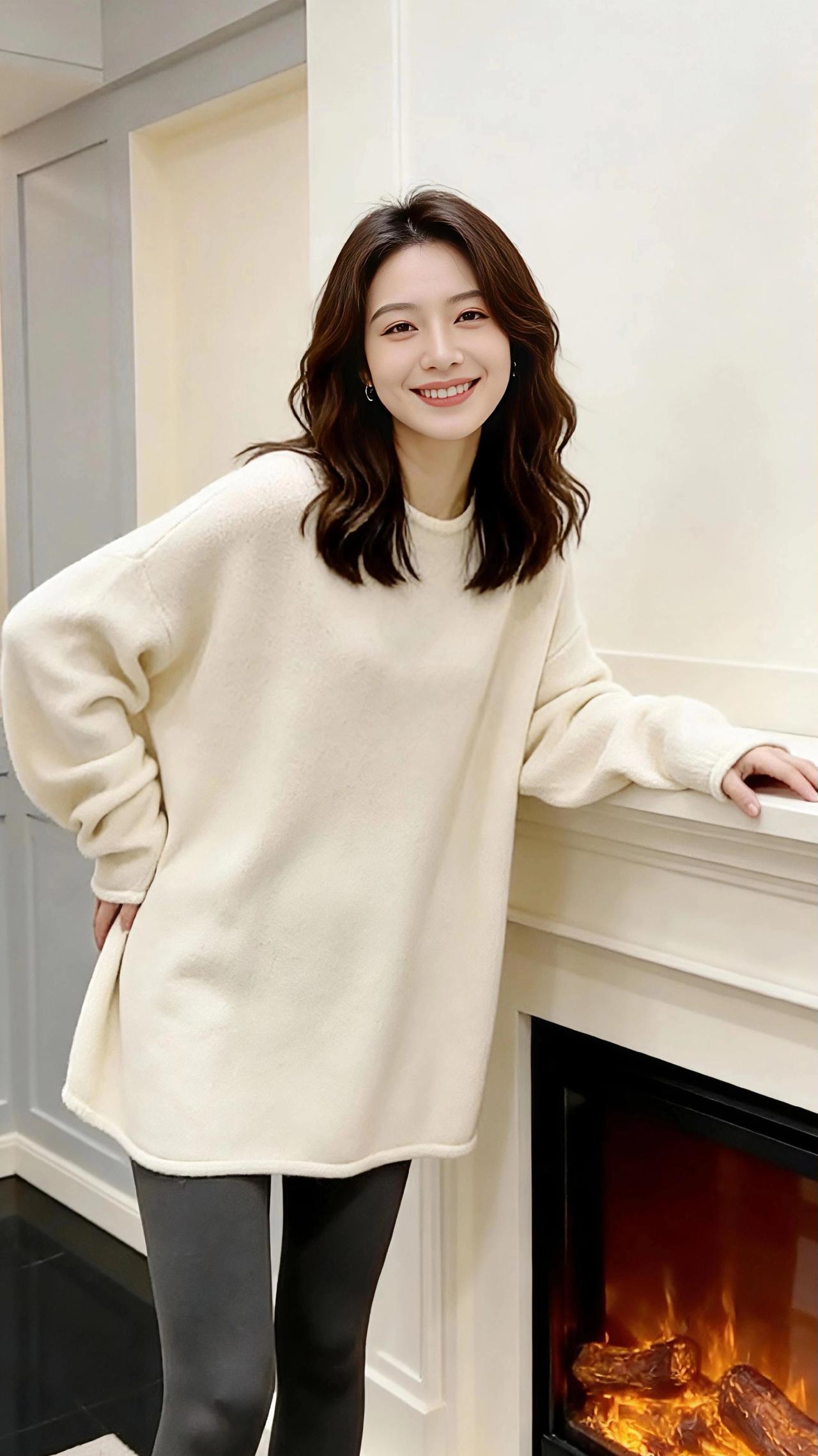 暖冬织语 冬日的风卷着雪沫敲在玻璃窗上,室内却漾着绒绒的暖。米白色的针织衫松松垮垮地裹着身,像揣了一团晒过太阳的云朵,软乎乎地贴着肌肤,将寒意隔在门外。 她倚着壁炉站定,火光跳脱着舔舐炉壁,把衣摆的绒边染成浅金。指尖划过针织的纹路,像是触到了冬日里最温柔的褶皱,慵懒又惬意。转身坐在柜台边,杂志的纸页在指间轻响,目光落在哪一页,哪一页就沾了几分闲适。窗外的雪还在落,枝头积了蓬松的白,她抬眼望向窗外时,嘴角便扬出浅浅的笑,猫咪蜷在手边,暖烘烘的毛球蹭着书页,时光也跟着慢了下来。 捧着热咖啡的时刻最是温柔,杯沿的热气模糊了眉眼,奶香混着咖啡的醇,漫进针织衫的每一寸缝隙。走到窗边时,指尖拨弄着发梢,目光穿过玻璃望出去,雪落的街巷静悄悄的,而她身上的米白,却成了这个冬日里最鲜活的暖,像一杯温吞的热牛奶,又像一段织满温柔的旧时光,在冷冽的季节里,揉出了满心的柔软。 新年穿搭 小个子穿搭 冬季穿搭 打底衫