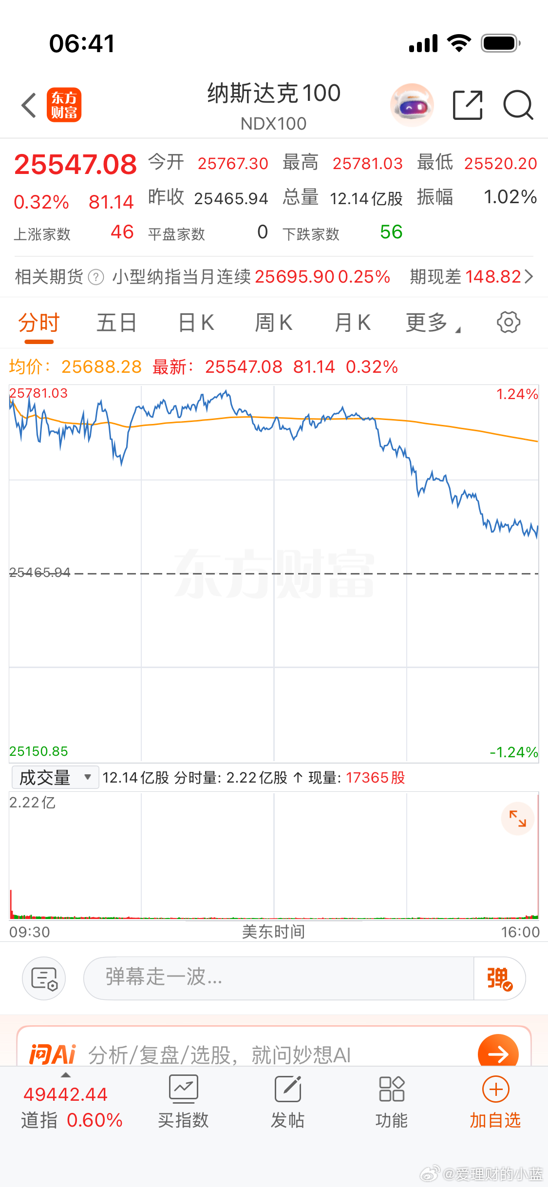 各位上市公司股东们早上好。美股尾盘跳水高开低走。纳斯达克 +0.25 纳斯达克1