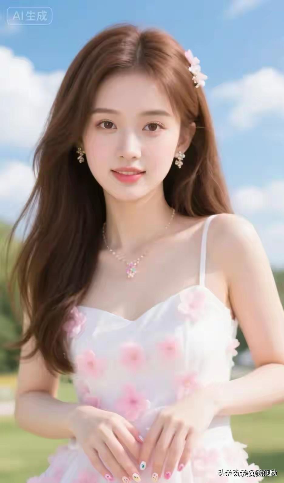 出水芙蓉,亭亭玉立。 面若桃花,美如冠玉。 漂亮少女,一袭粉色。 花瓣衣裙,温柔