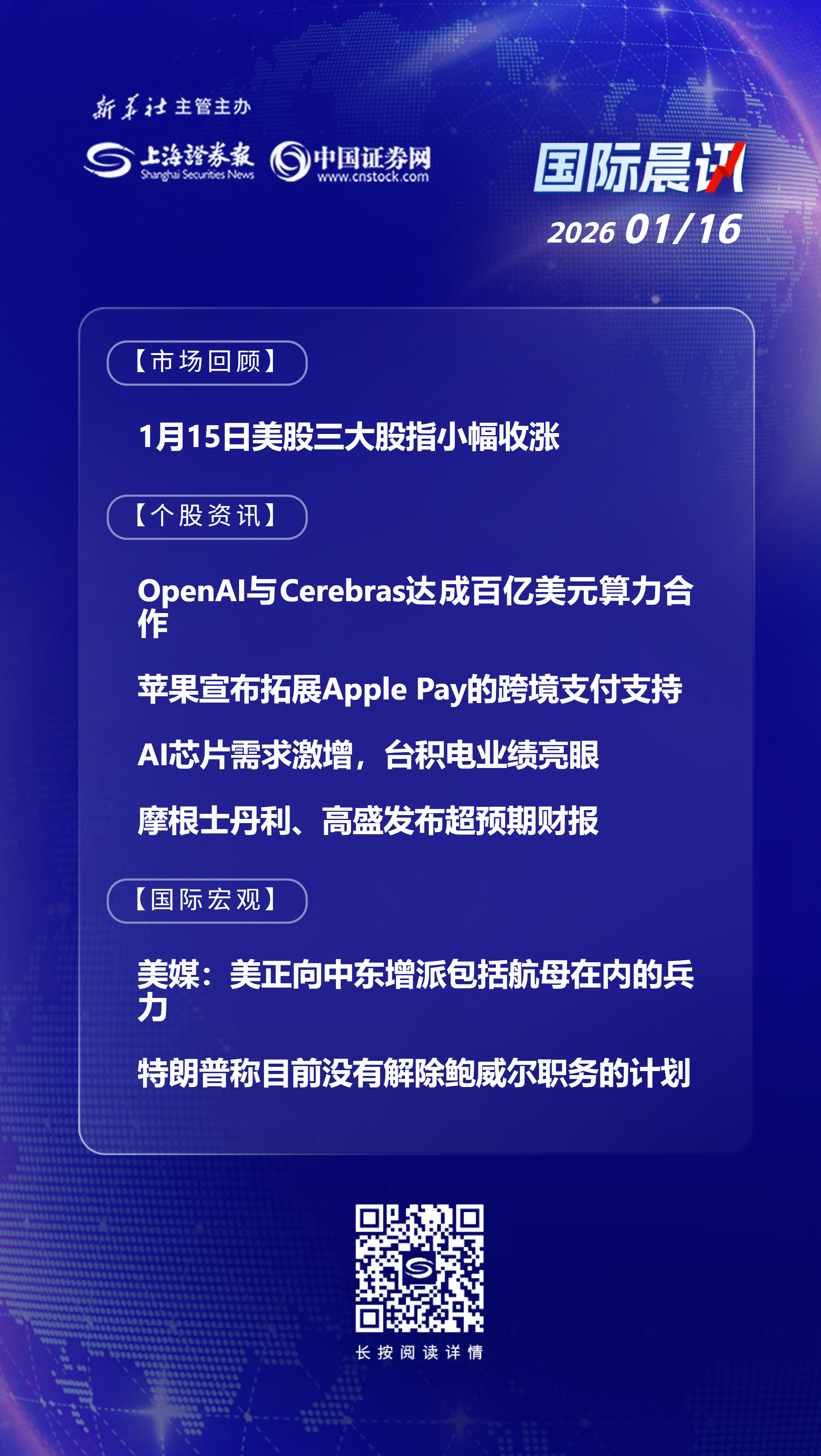 当地时间1月15日,美股三大股指小幅收涨,道指涨0.6%报49442.44点,标普500指数涨0.26%报6944.47点,纳指涨0.25%报23530.02点。
