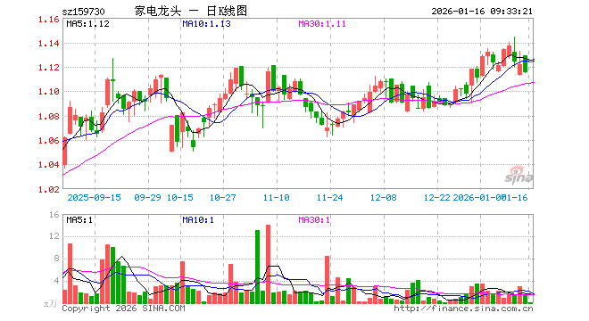 1月16日,龙头家电ETF(159730)开盘涨0.81%,报1.124元。龙头家电ETF(159730)重仓股方面,三花智控开盘涨0.93%,海尔智家涨0.35%,美的集团涨0.04%,格力电器涨0.25%,石头科技涨0.44%,德业股份涨0.45%,科沃斯跌0.05%,公牛集团涨0.12%,海信家电涨0.37%,老板电器涨0.57%。
