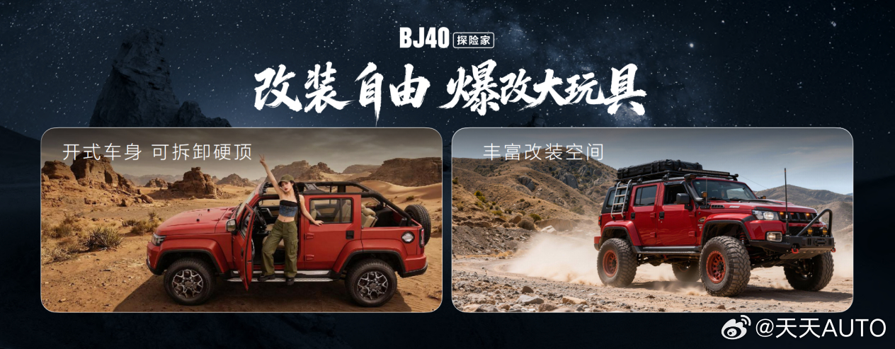 BJ40探险家13.49万元起上市,鲁智深扮演者晋松现场拆车新华AUTO:1月15日,北京越野“经典之上,再造经典——BJ40探险家&北京81 2.0共创版,来了!”发布会在北京汽车博物馆举行。BJ40探险家正式上市,官方指导价为14.99—15.99万元,国补焕新价13.49万元起。北京81 2.0共创版亮相,展现市场首个“战术方盒子”在全民共创模式下的革新突破。北京越野准备了六重尊享礼遇,价值12000元,现在下订立即享受:第一重,越享礼:赠送拖车包(含牵引资质、拖车方口和拖车取电口);第二重,娱乐礼:基础流量及OTA升级终身免费;娱乐流量3年不限量、不限流;第三重,致敬礼:3月31日前,现役退役军人、警察、消防员等,以及其直系亲属购车享补贴3000元;第四重,质保礼:首任非营运车主,整车3年/10万公里质保;第五重,保养礼:首任非营运车主,首次基础保养免费;第六重,救援礼:首任非营运车主,享3年免费道路救援服务。BJ40探险家:经典之上,再造经典北京越野董事长王昊表示,BJ40作为中国越野的领路者,亲历过无数盛事荣耀,也成为中国汽车的独特文化符号,在全球用户的认可中走入了万千家庭。BJ40以探险家的名义,开启全新征程,在经典设计、自由改装、专业性能、极致安全和跨圈舒适五大维度再造新经典,为中国越野车市场再造经典专业越野SUV。再造新经典的第一步,是在经典中焕新。BJ40探险家坚持方正车身,通过性更强,车内空间更规整;采用五孔格栅前脸设计,看见五孔,便知北京;LED光圈大灯、隧道式尾灯和“断开式”灯带,辨识度极高,在视觉上拉宽车身,更显稳健。细节处大胆焕新,全新推出更加酷炫好看的“黑化”套件,前格栅和前后保险杠采用磨砂黑处理;全新内饰提供全黑和黑棕主题,质感细腻、氛围高级。 BJ40探险家是一个“爆改大玩具”,采用同级唯一快拆硬顶设计和开式车身,硬派越野可变身敞篷越野车;支持深度创意,是一个容纳千种玩法、万般想象的潮流生活伙伴。改装是态度,性能是根本。BJ40探险家满配搭载电控分时四驱和经典三把锁,从容应对各种地形;全系标配越野AT胎,能轻松在全地形任意驰骋;搭载2.0T的汽油和2.0D的柴油双动力总成,匹配豪华品牌同款采埃孚8AT变速箱;具备超强通过性,拥有220mm的最小离地间隙,涉水深度达750mm;全系标配2.5吨拖拽资质,越野生活被极大地拓展和丰富。安全是最大的豪华。BJ40探险家搭载外露式金属防滚架,构筑起坚实的生存空间;采用高强度笼式车身结构,以及两纵八横整体式大梁;车底铺设一体冲压锰钢护板,达0.42平方米,为核心部件提供严密防护;集成20余项主被动安全功能,在各种复杂路况下都能保驾护航。真正的硬派,不该以牺牲舒适为代价。BJ40探险家主驾座椅,配备6向电动调节与4向专属电动腰托;主副驾全系标配通风、加热功能;搭载同级最大的15.6英寸超清中控屏,打造沉浸式交互体验;车机系统配备高通8155芯片,配合16G运行内存和128G存储空间,操作流畅跟手,应用切换丝滑;搭载全新版本的高德地图,除了导航精准,还整合红绿灯读秒、绿波车速建议等实用功能;全系标配CarPlay以及亿联互联等主流手机互联方案,手机能快速、便捷地与车机连接;与华为应用商城合作,提供30款车载应用;共有5个户外充电接口,随用随充。鲁智深扮演者晋松现场拆车,“BJ40探险家改装大赛”正式启动 演员晋松现场开启BJ40探险家拆车首秀,只用几步操作便完成了车顶的拆卸,将BJ40探险家从一辆专业越野车,变身成敞篷越野。“BJ40改装佳作全民票选”活动共有十个最具代表性的作品入围用户票选环节,王昊和晋松现场为TOP5作品获奖者颁奖。北京越野官方改装样车BJ40探险家黑武士全网首秀,并在第二现场全程直播改装全过程。北京越野正式启动“BJ40探险家改装征集活动”,活动将在悦野圈APP改装频道上线。BJ40探险家入馆并入展北京汽车博物馆收藏,将在博物馆里继续讲述中国越野的故事。此前,BJ40增程作为“中国制造‘十四五’成就展”唯一的越野品类展示车,亮相中国国家博物馆;BJ80C阅兵车则被中国共产党历史展览馆荣耀典藏。至此,北京越野成为被“三馆连藏”的车企。BJ40系列累计销量已突破30万台。2025年,北京越野相继推出BJ40增程、BJ40燃油、BJ30旅行家、BJ40增程元境智行和BJ60增程行政版五款新车,销量突破14万辆,交付量超过20万台。其中,BJ40增程的表现尤为亮眼,连续9个月稳居增程越野车市场销量第一。BJ40探险家是BJ40的焕新力作,北京81则是BJ80的革新传承。北京81脱胎于BJ80,行业首创BIP(Build in Public)造车模式。基于用户反馈,北京81 2.0共创版在1.0共创版的基础上实现了多项优化升级:前机盖降低隆起弧度、五孔格栅深度精细化改造、大灯融入5条转向灯带等,真正实现“用户的车,用户来造”。经典之上,再造经典。愿BJ40探险家和北京81成为大家探索未知的伙伴,北京越野将持续以硬核创新,回应用户每次呼唤,守护大家每段旅程,再造更多经典!