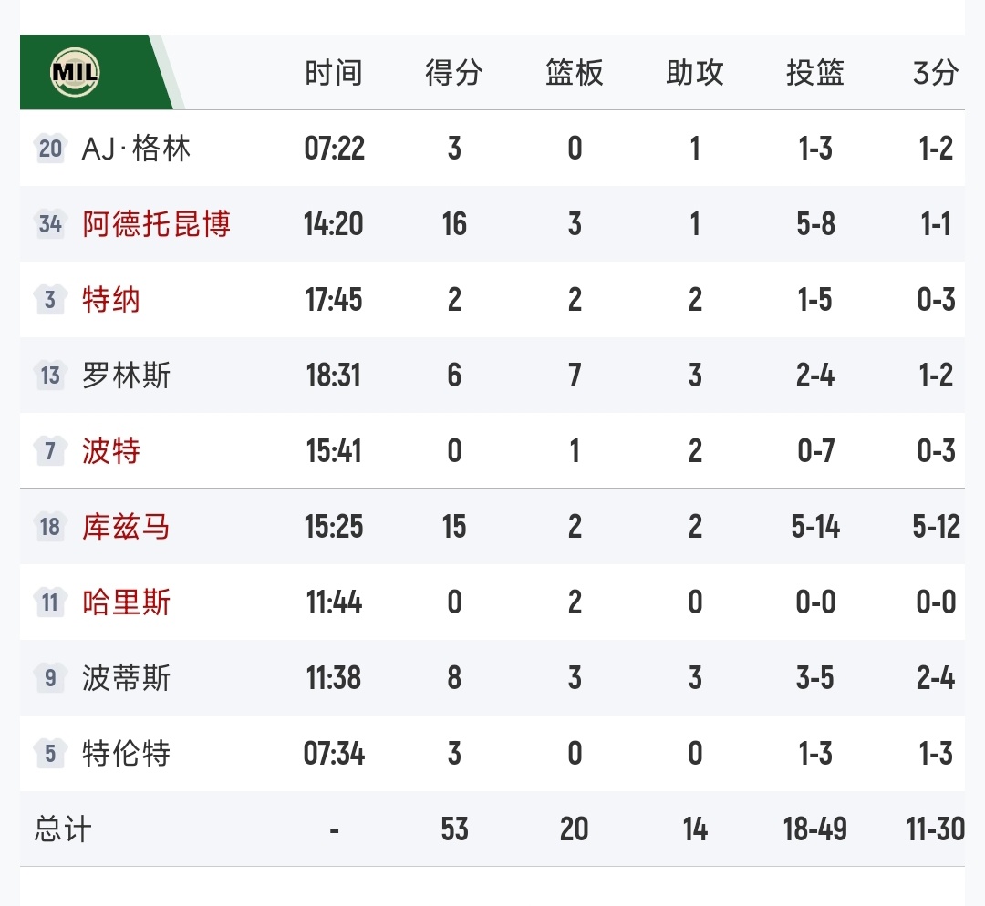 半场比赛结束,马刺66-53雄鹿!库兹马三分11中5,有点不讲道理