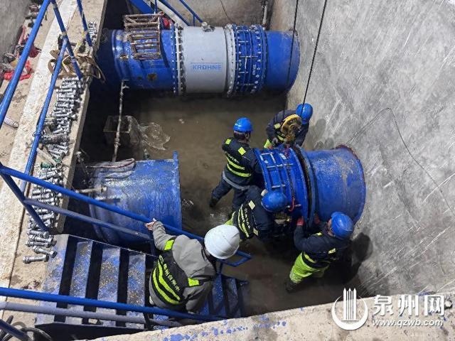 劳服公司与泉南供水公司职工连续奋战,成功完成原水流量计紧急更换抢修任务。