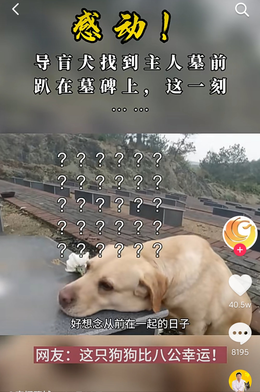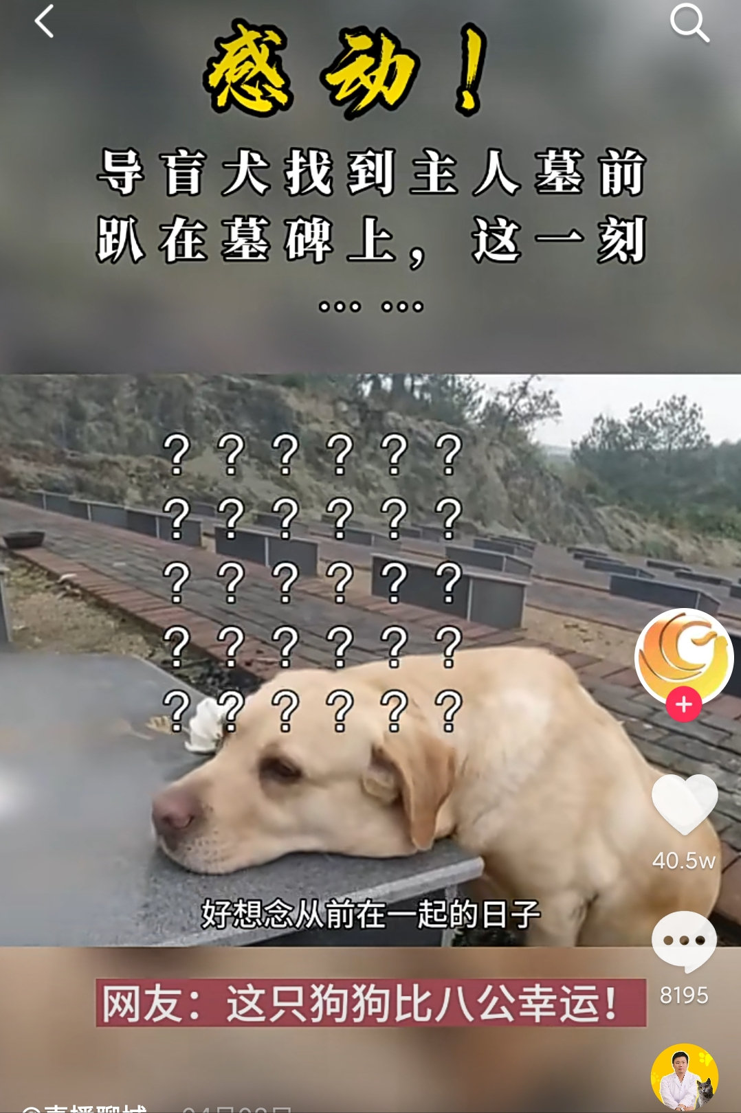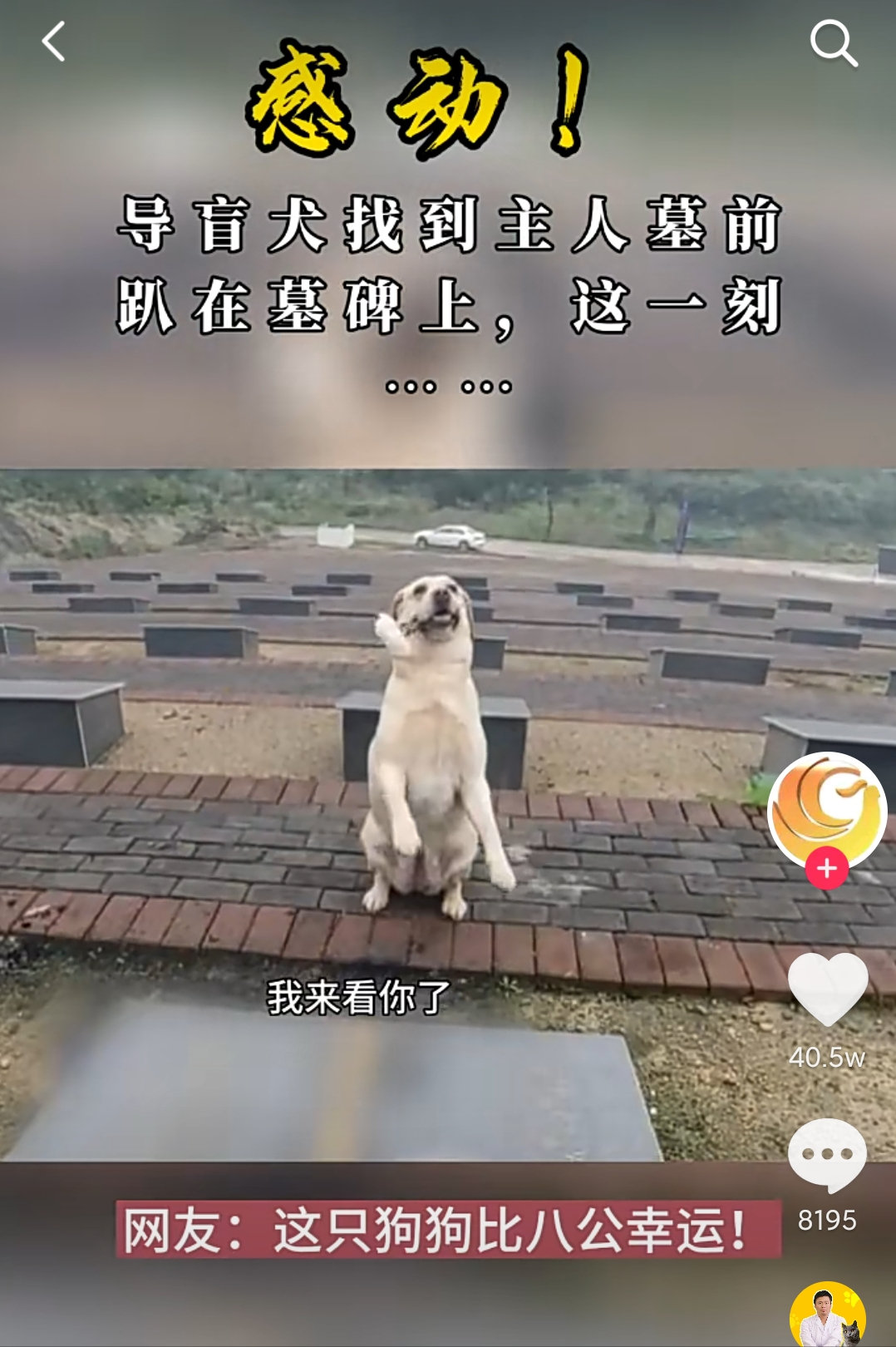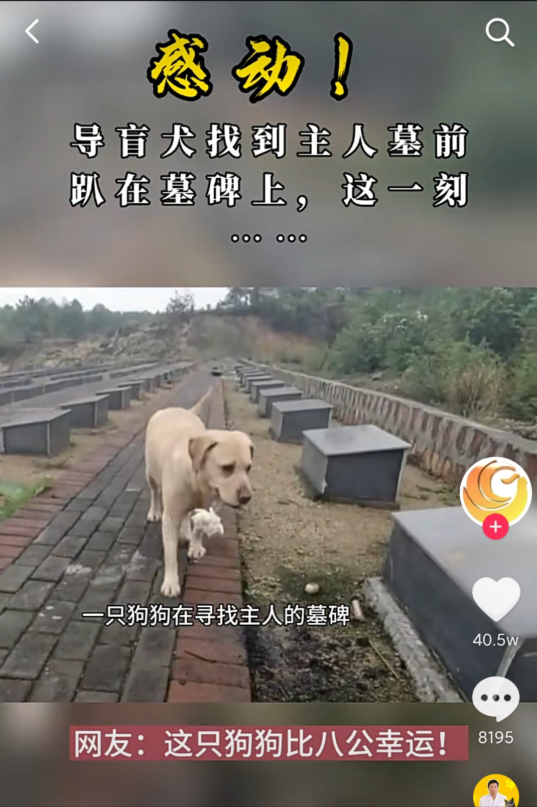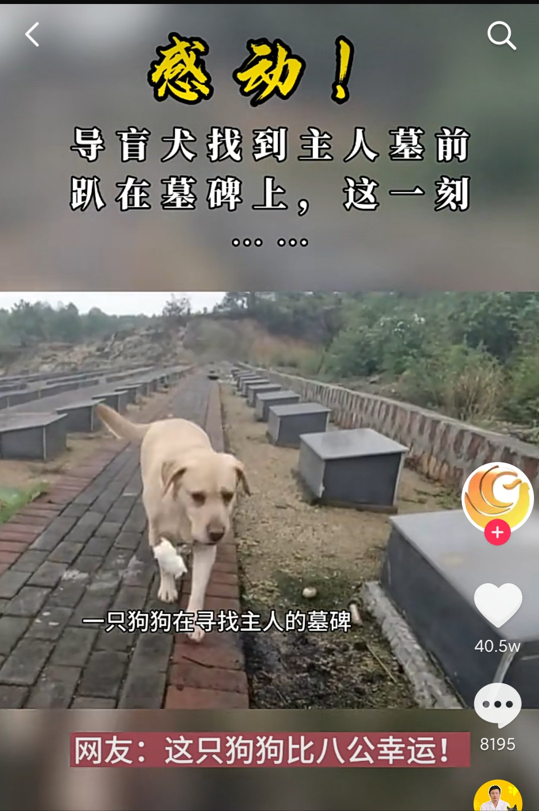 这只拉布拉多今天是特地来给曾经的主人扫墓的,它的口中咬着一朵白色的小花,拉布拉多在进行了简单的礼仪之后便是趴在了主人的墓碑前,我想,它的心里此刻一定很难受吧,曾经和它共同生活的人去世了,那段美好的回忆,将会永远留在它的心里。这只拉布拉多是一只导盲犬,它的主人是一个看不见世界的盲人,所以相比起正常人而言,它和主人在一起的时间更加长、感情也一定更加深刻,但是这名盲人显然是食言了,他扔下了他的狗狗,独自一个人去了他天堂。都一段深刻的感情之中,留下的那一个才是最痛苦的,看狗狗的表情和它的动作,它内心的苦楚恐怕和我们人相差无几,甚至是更深一些吧。