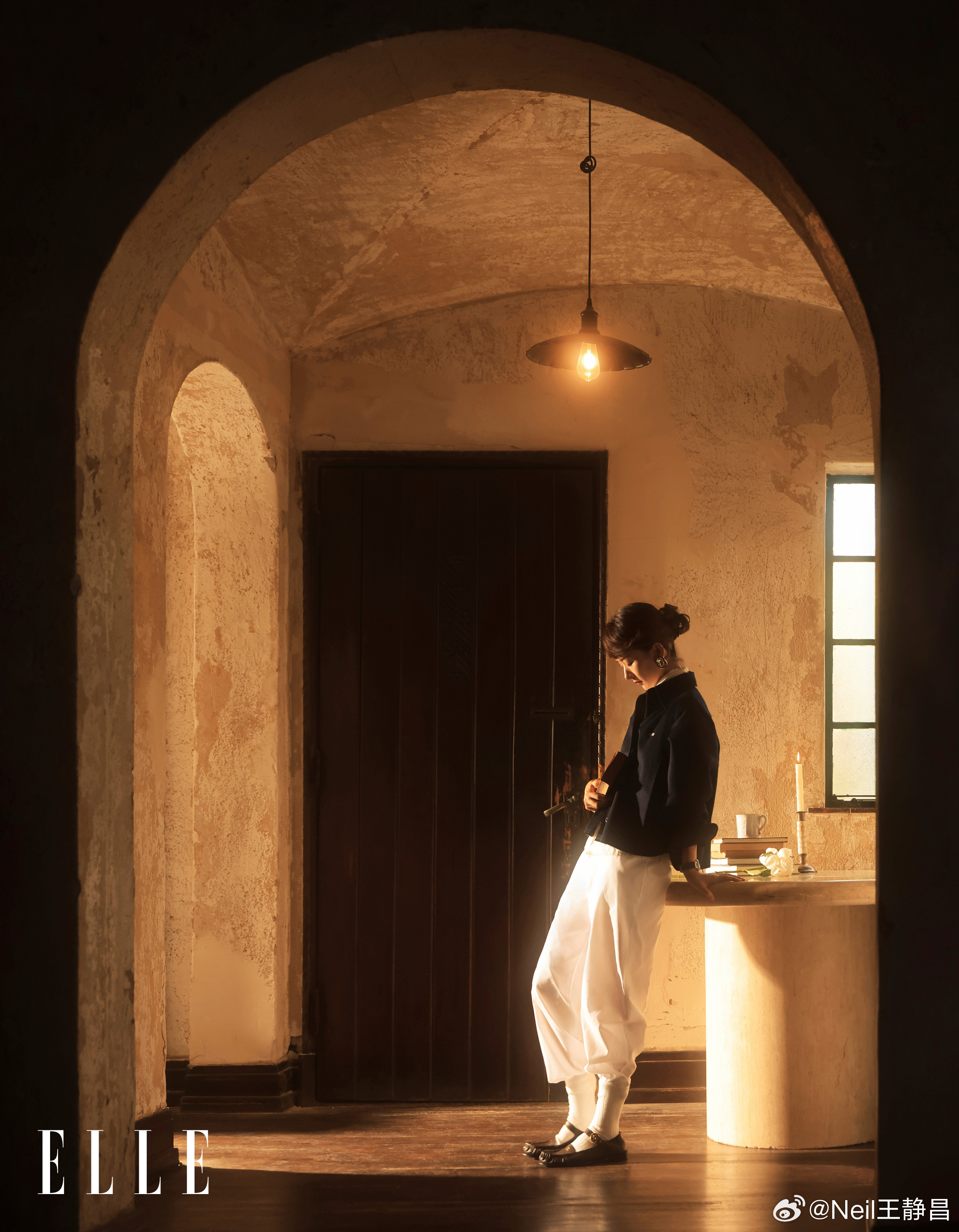 登上《ELLE》2月刊封面。温馨的室内环境和柔和的光线营造出一种宁静与温暖的感觉