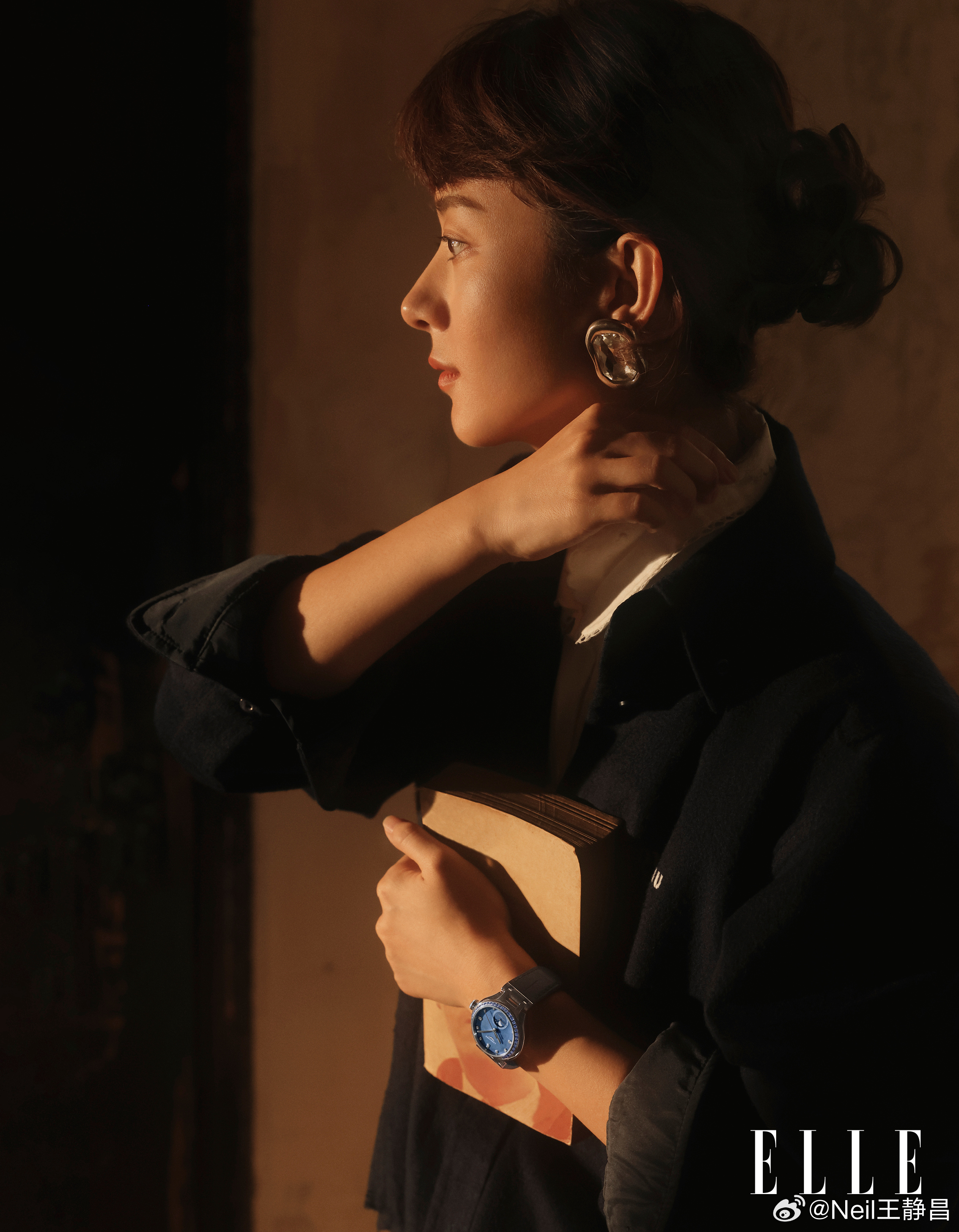 登上《ELLE》2月刊封面。温馨的室内环境和柔和的光线营造出一种宁静与温暖的感觉,展现了她的柔美与恬静。摄影:陈漫赵丽颖ELLE封面赵丽颖复古光影的静与柔