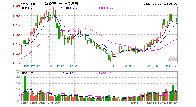 1月16日,截止午间收盘,智能汽车ETF华夏(159888)涨0.36%,报1.375元,成交额1981.95万元。智能汽车ETF华夏(159888)重仓股方面,立讯精密截止午盘涨2.09%,芯原股份跌4.34%,拓普集团涨3.98%,豪威集团涨1.23%,科大讯飞涨0.49%,德赛西威涨1.19%,闻泰科技涨1.03%,欧菲光跌1.26%,均胜电子涨3.69%,思特威涨2.44%。