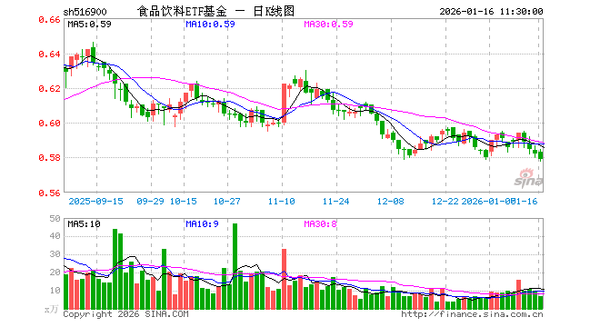 1月16日,截止午间收盘,食品饮料ETF基金(516900)跌0.52%,报0.579元,成交额391.39万元。食品饮料ETF基金(516900)重仓股方面,贵州茅台截止午盘跌0.29%,五粮液跌0.62%,伊利股份跌0.55%,泸州老窖跌1.16%,山西汾酒跌1.26%,海天味业跌1.46%,东鹏饮料跌0.64%,洋河股份跌1.32%,今世缘跌1.09%,古井贡酒跌0.84%。