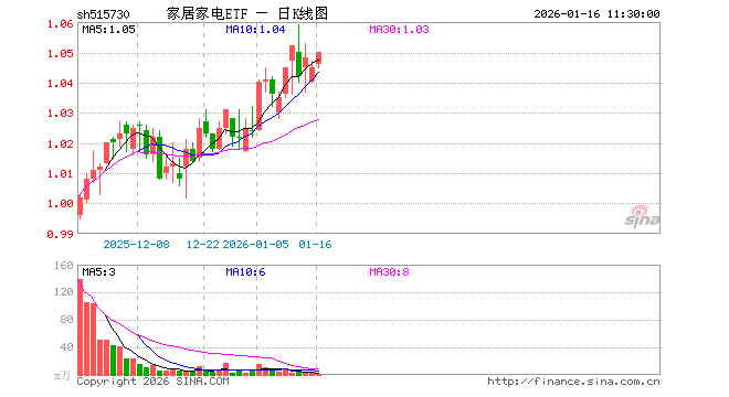 家居家电ETF(515730)业绩比较基准为中证家居家电指数收益率,管理人为永赢基金管理有限公司,基金经理为储可凡,成立(2025-11-14)以来回报为4.53%,近一个月回报为3.22%。