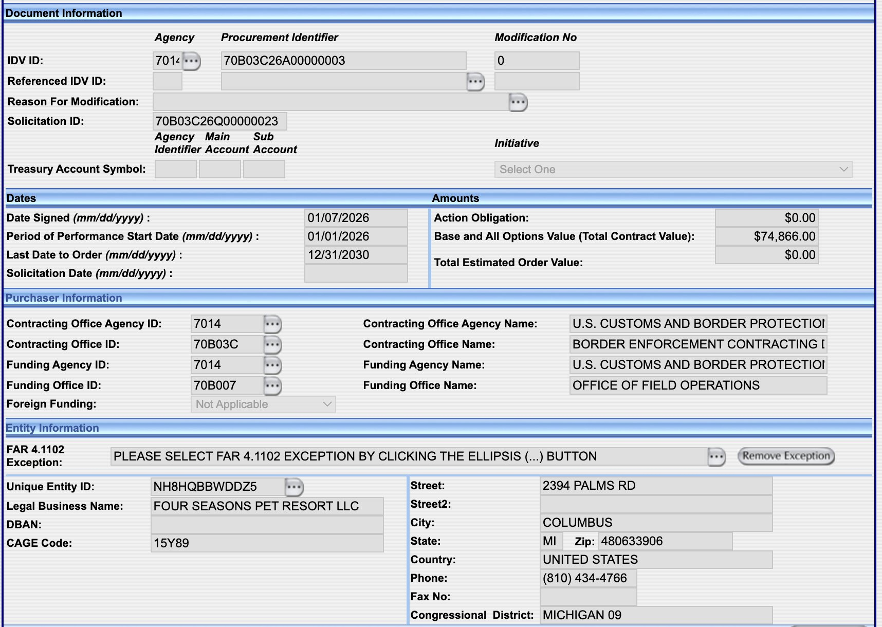 🔻根据联邦合同显示,美国海关和边境保护局花费了 75,000 美元将他们的警犬安置在四季宠物度假村。🔻该宠物度假村广告中宣传了“豪华套房”、“每日狗冰淇淋”以及“燕麦椰子油皮肤护理“等水疗服务。🔻目前,密歇根州利沃尼亚市真正的四季宠物度假村业主发出声明:“我们跟这事儿没关系”。意思是与美国海关和边境保护局签订合同的那个机构可能还是冒名的,涉事的犬舍甚至连真实网站都没有,位于密歇根州哥伦布市。🔻via fact post news国际局势 热点现场 海外新鲜事