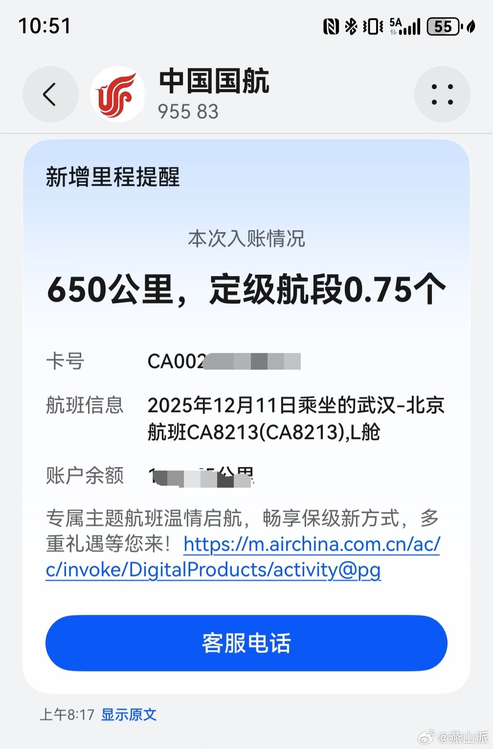 燕山派日常 国航今年这是要大力清理金卡和白金卡会员了吗?去年北京飞深圳、武汉,定级里程650公里,定级航段0.75个。今年定级里程不变,航段直接打3折,只给0.28个。还差17个航段升白金,这么看今年又没戏了