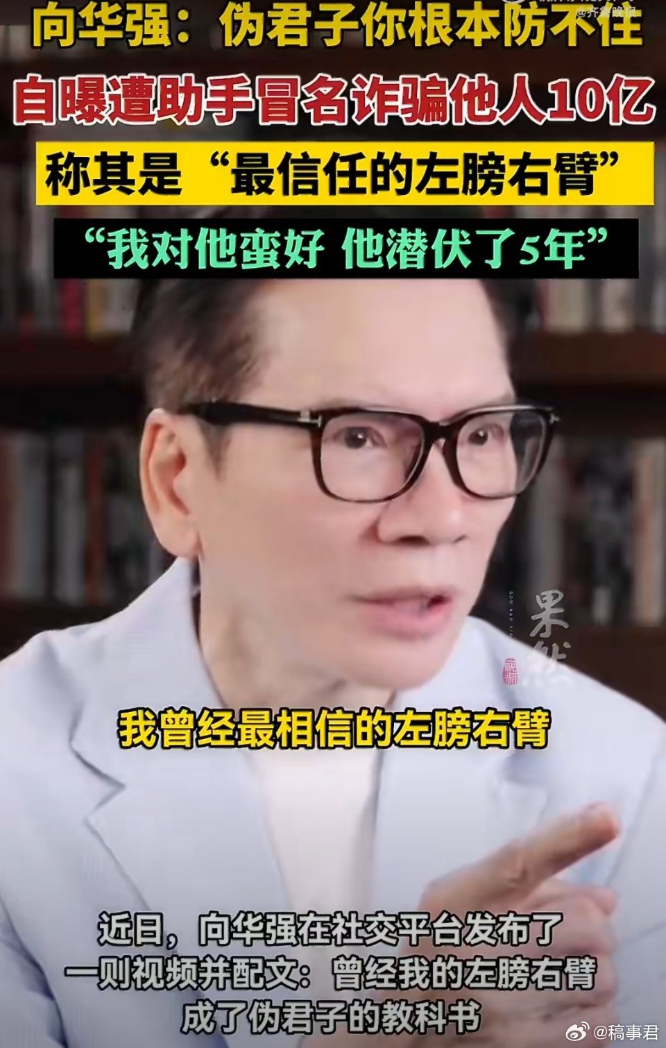 向华强自曝助手冒名诈骗他人10亿 这年头,连大佬都得防着点,世道变了呀
