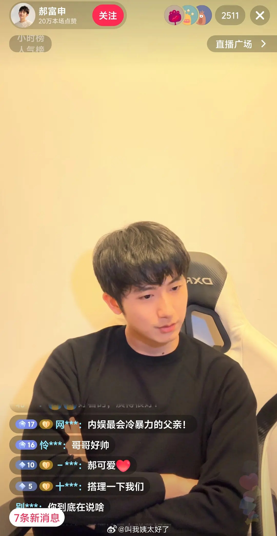 哈哈哈哈郝富申直播太好笑了,弹幕里面全是CP粉在贴脸,找半天也找不出一条评论回复