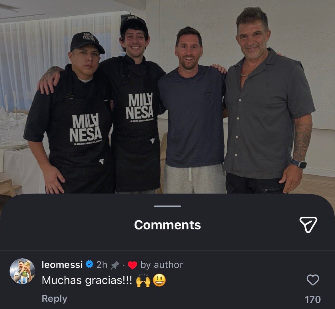 梅西现身迈阿密EL CLUB DE LA MILANESA餐厅🍽️餐厅社媒发布了他的照片,并提到梅西成为其合作伙伴,这是太爱炸肉排梅西回复“非常感谢!😃🙌”在迈阿密的可以试试😋梅西迈阿密国际超话