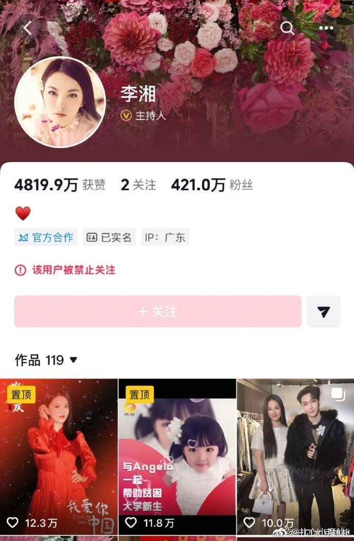 李湘被全平台禁止关注了她怎么了