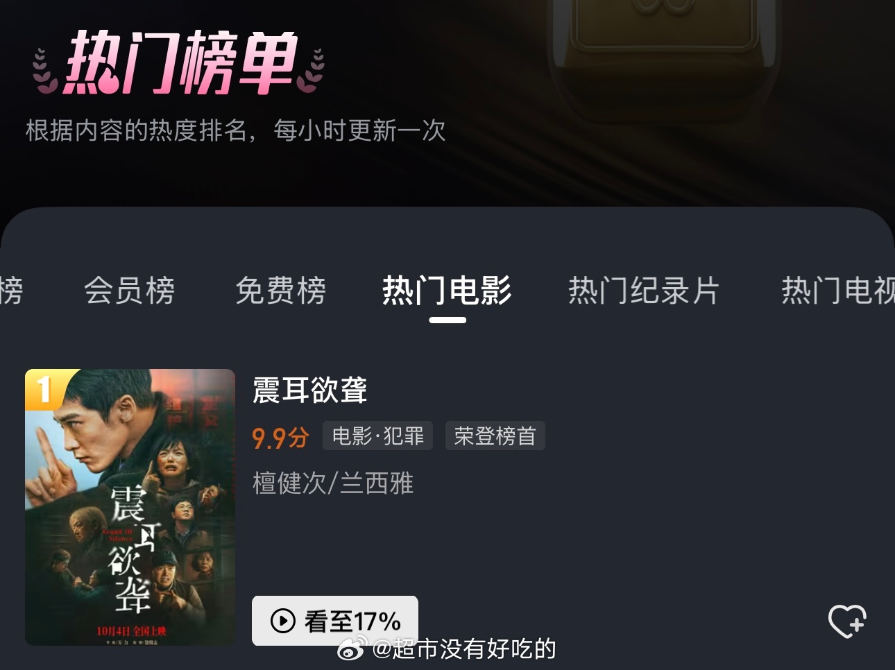 檀健次拿下B站双榜TOP1 :《震耳欲聋》站内评分9.9电影第一,《DEAD R