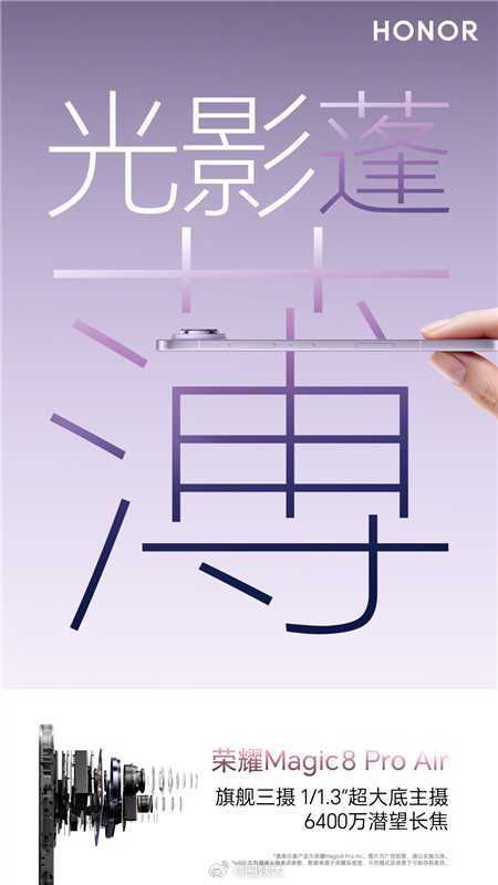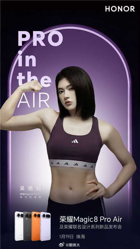 吴艳妮为何是Pro in the Air的最佳诠释者?因为她本身就是“挑战者”,不断突破人们对跨栏速度极限的想象的同时,还在生活中轻盈松弛。荣耀Magic8 Pro Air亦然,挑战“轻薄必减配”的行业偏见,在6.1mm的机身里实现全能旗舰体验。这是挑战者对旧规则的破局。1.19,吴艳妮将出席荣耀Magic8 Pro Air发布会