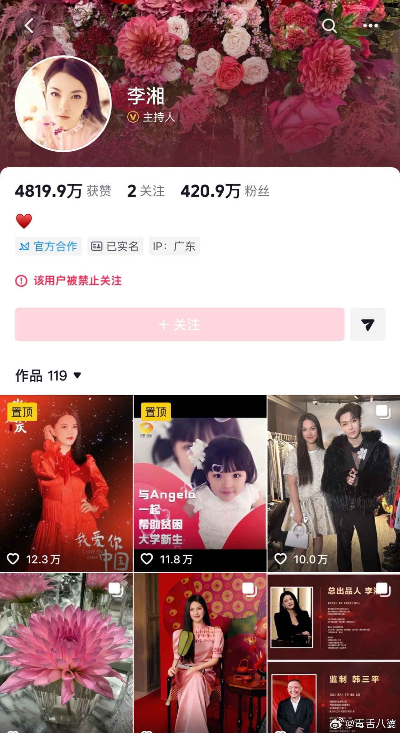 果然事出有因必有妖!李湘的账号为啥突然被禁止关注了,原来她七月份就已经被处理过