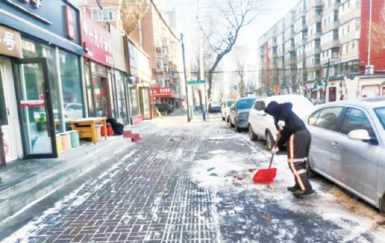 找到问题的根源,万宝社区同步推进“挪车、清污、劝导”三步整治,从源头杜绝问题再次发生。首先,协调环卫部门将临时停放的清运车转移至合规清运点,杜绝继续产生污染。“我们还协调环卫部门增派保洁人员和作业设备,对现场人行步道及周边地面的污水、冰面及垃圾残留进行彻底清理,消除大家通行时的安全隐患。”赵雨馨说。