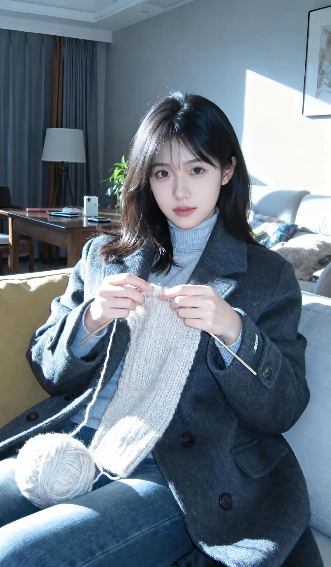 冬日暖阳下,手织毛衣的温馨时光街拍 高清美女
