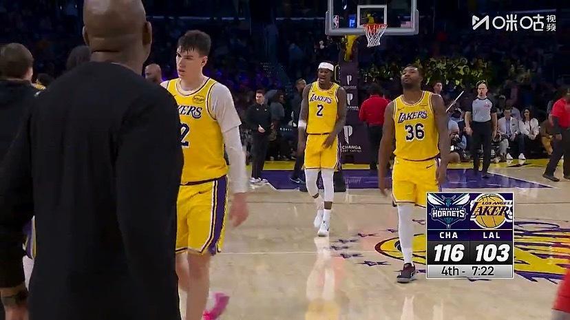 场边观众喊一喊,把詹姆斯换下去,这比赛还能打。黄蜂vs湖人