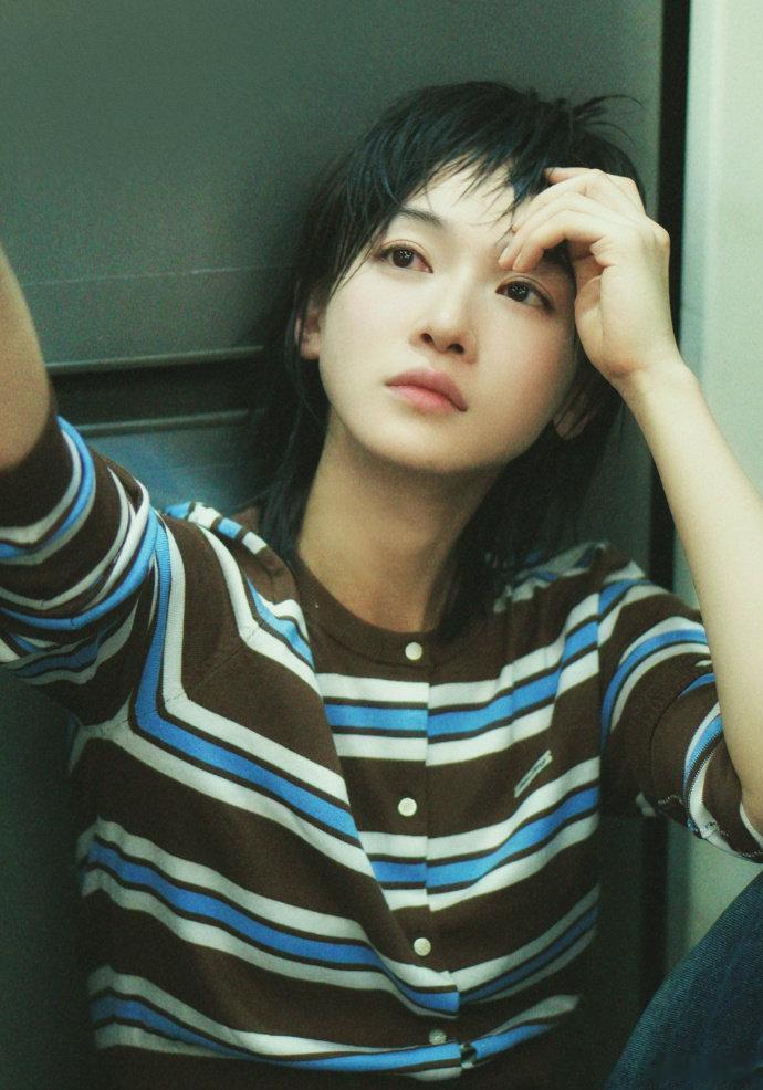 吴谨言短发胶片照 吴谨言短发胶片照,短发条纹上衣造型帅气啊~