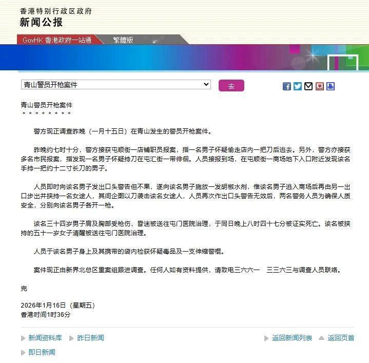 34岁男子商场带刀劫持人质,警方连开两枪击毙!现场画面公布,香港通报详情据通报显