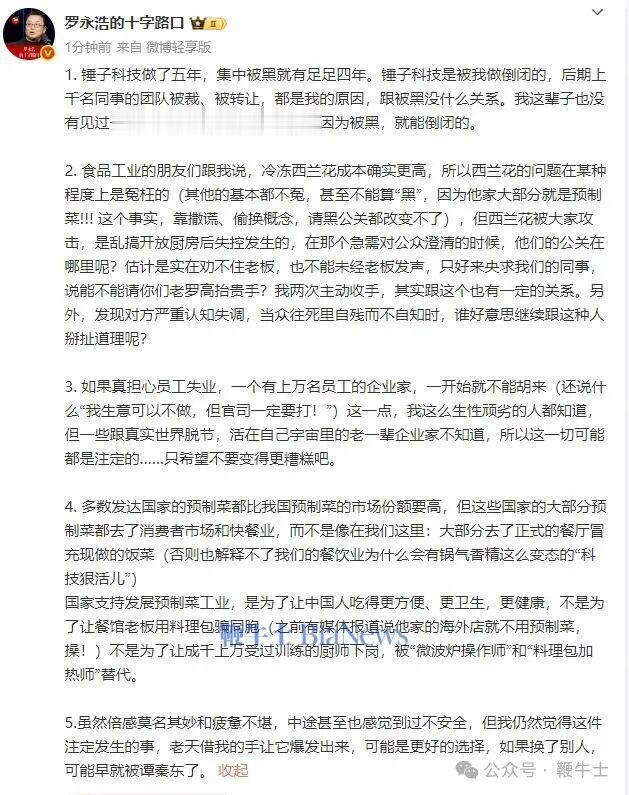 贾国龙回忆,西贝于去年9月遭遇网暴污蔑,彼时凡为西贝发声者均会遭到网暴攻击,华杉因出面支持西贝,不仅自身被全网嘲弄,其执掌的华与华公司的客户也受到连带威胁。
