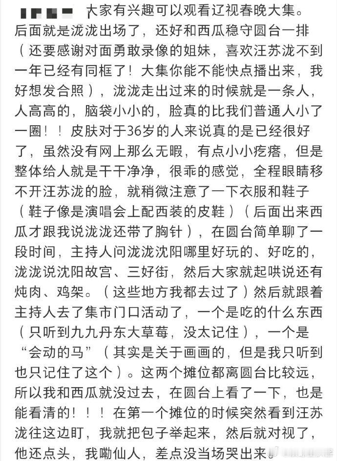 汪苏泷辽宁春晚阵仗也太夸张了 录制现场人山人海全是喊他名字的声音,春晚大集挤到走不动道,他还和粉丝分享美食,双向奔赴的氛围太戳人~ 辽宁春晚