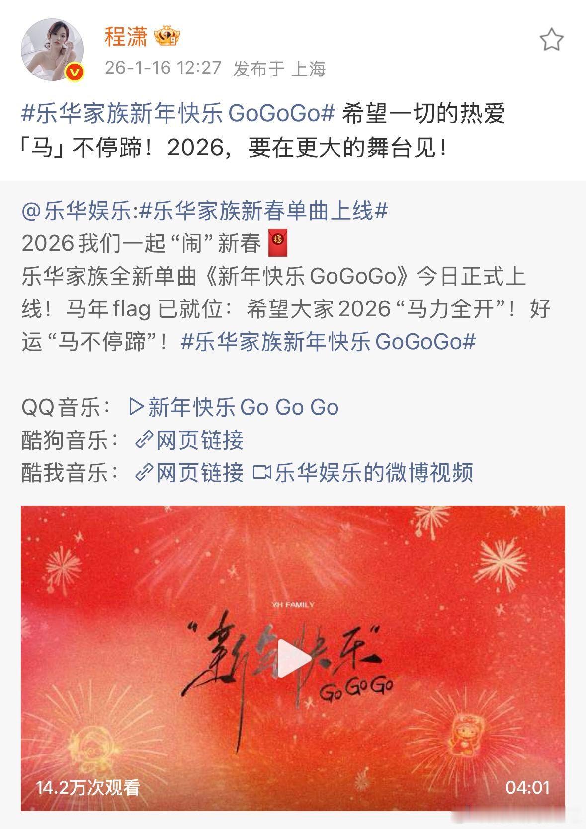 乐华新年全员立flag 从新歌分享自然过渡到新年许愿,整个策划既巧妙又暖心。艺人