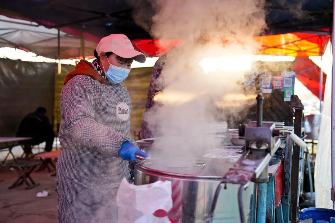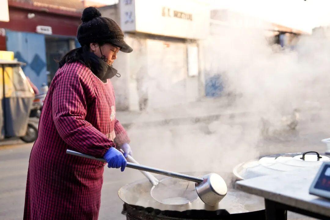 羊汤摊雾气蒸腾。大锅里羊骨翻滚,奶白色的汤熬得浓稠。一碗热汤,撒上香菜、胡椒粉,就着烧饼,是冬日里最暖的慰藉。