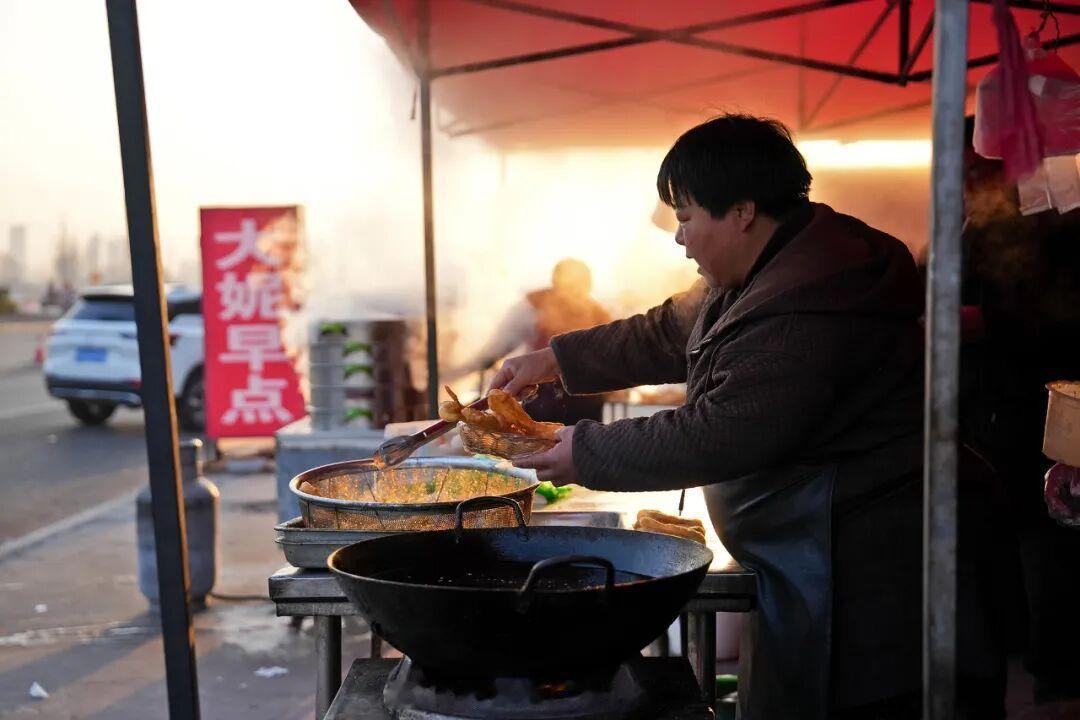 第一缕炊烟从早点摊升起,带着油条的焦香、豆浆的醇厚。金黄酥脆的大油条在滚烫的油锅里翻腾,“滋啦”一声,唤醒了整条街的味蕾。