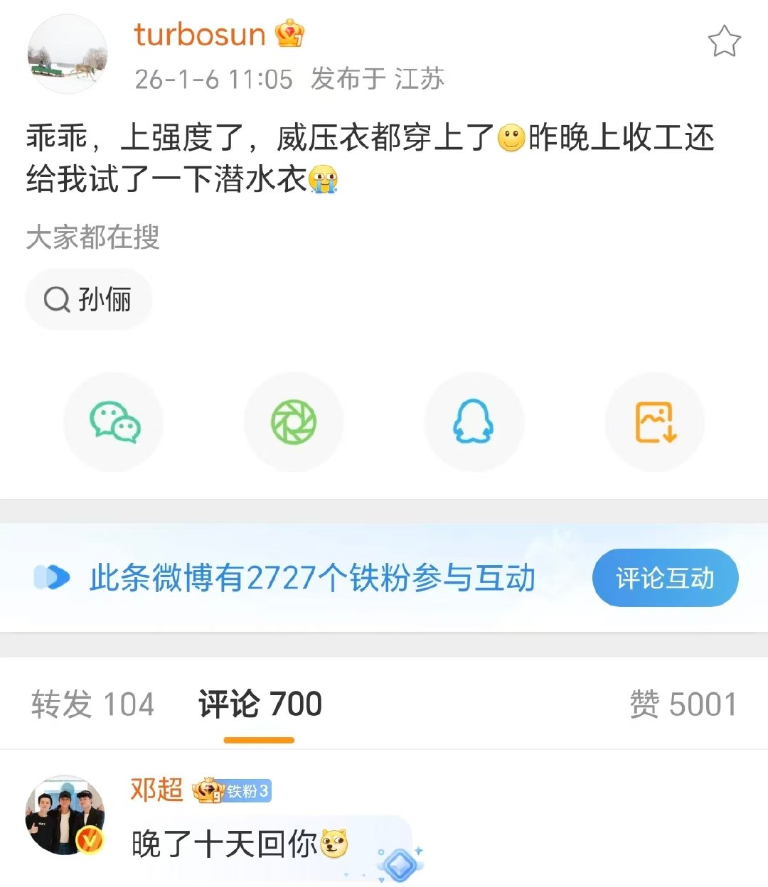 邓超晚了十天回孙俪 邓超一上线就回复孙俪 哈哈哈 邓超晚了十天回孙俪