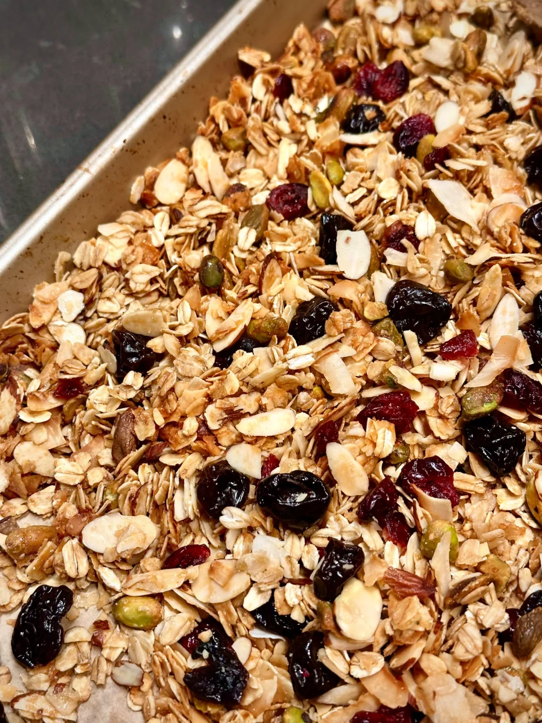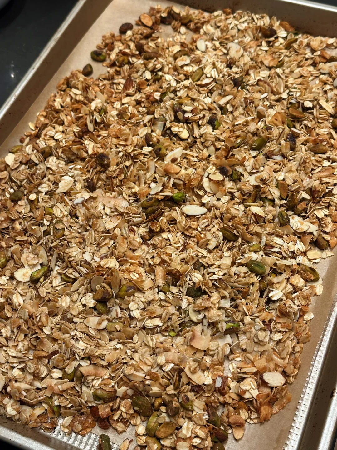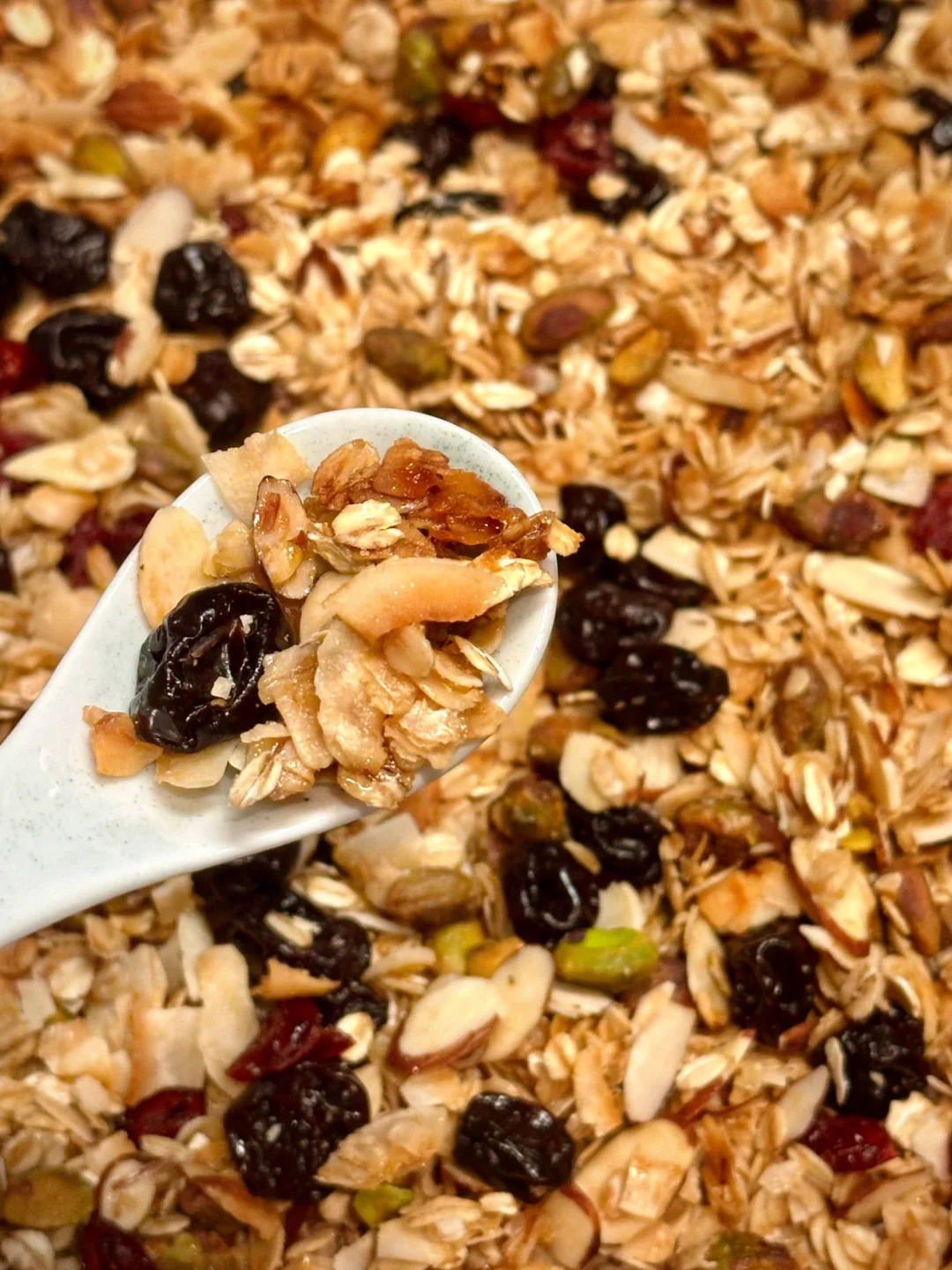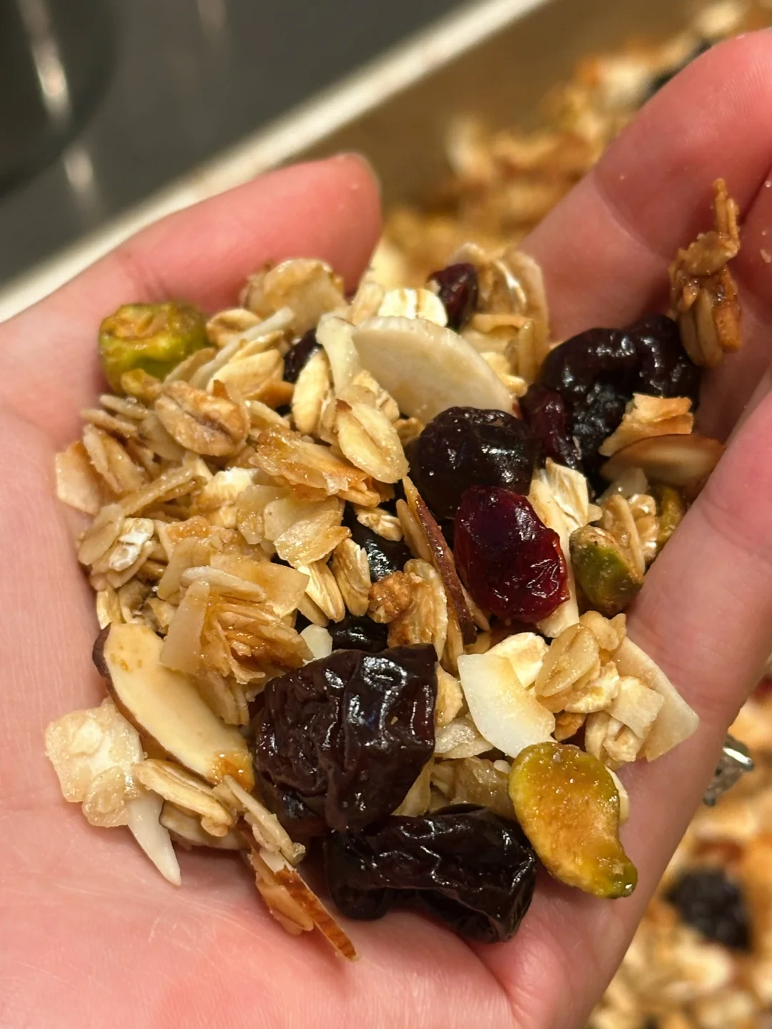 不愧是米三!真的优秀!比精品超市,甚至当地烘焙店里的granola还美味!恰到好处的酥脆,刚刚好的甜度配若隐若现的咸,经典的开心果酸樱桃和椰子片的搭配,特别有高级感,而且每一口都能吃到料就很快乐~