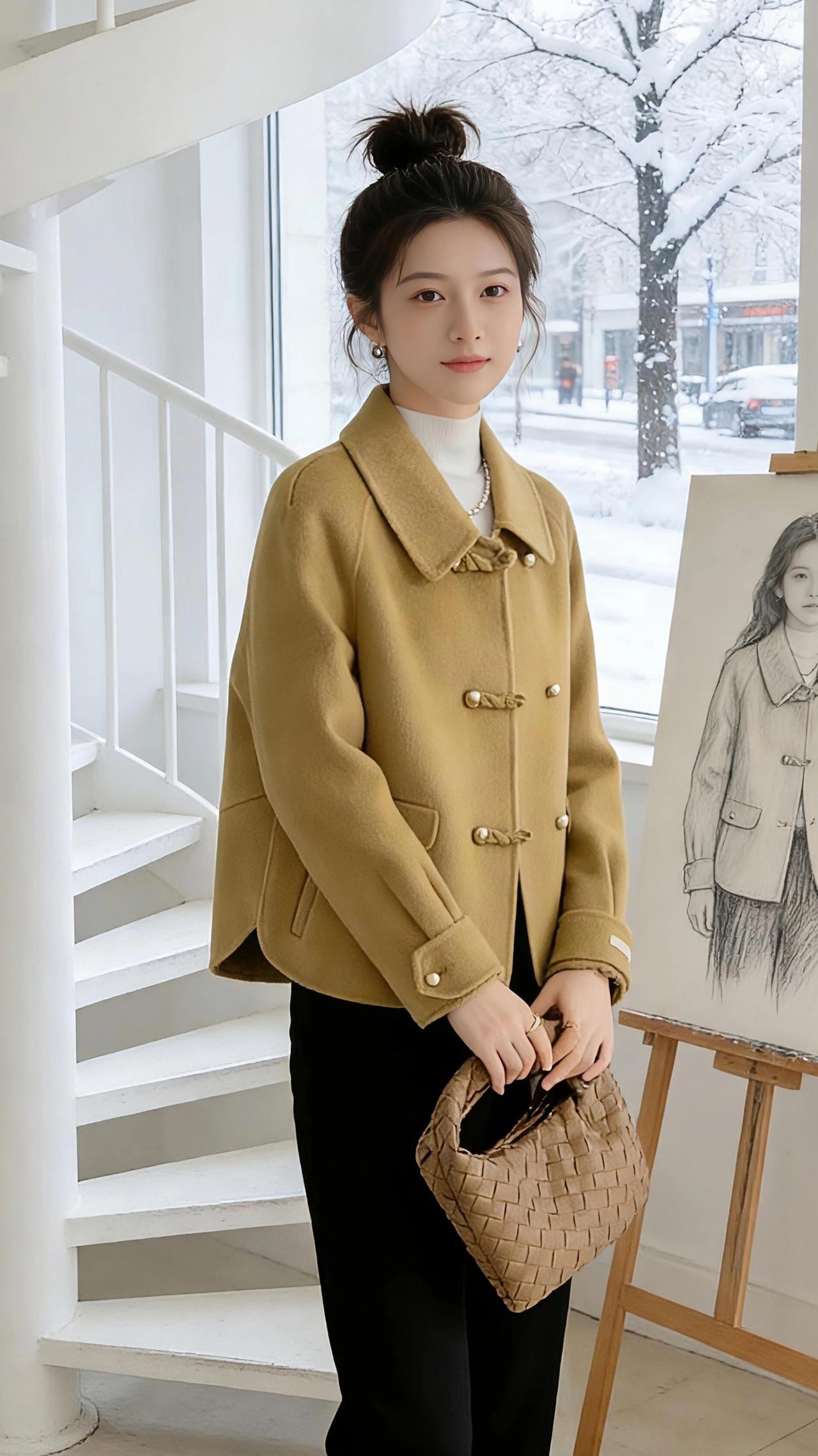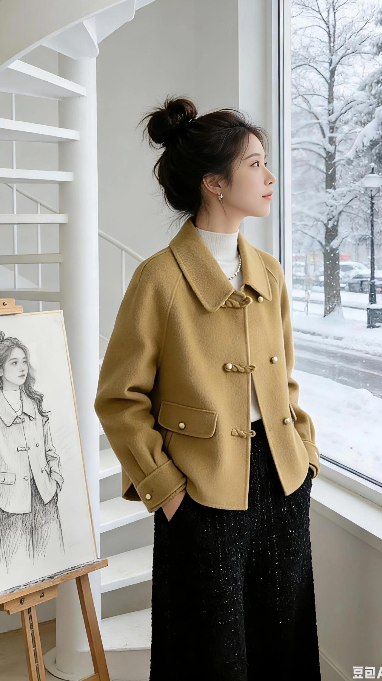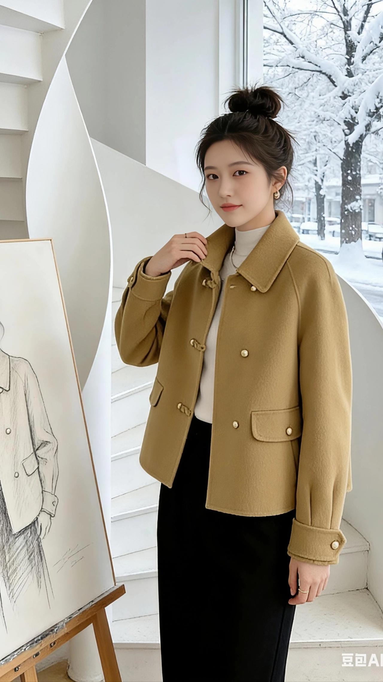 冬日光景 雪落满了窗外的街景,我拢了拢身上姜黄色的大衣,指尖触到柔软的羊毛,暖意便顺着皮肤漫开。 怀里的布偶猫蜷成一团,蓬松的尾巴扫过我的手腕,它蓝眼睛里盛着窗外的碎雪,也盛着画室里暖黄的光。画架上的素描还未干透,炭笔留下的线条里,藏着我对着镜子描摹的模样。 我走到窗边,看雪片簌簌扑在玻璃上,远处的街灯晕开一圈朦胧的光。大衣的牛角扣抵着胸口,像冬日里温温的拥抱。手里的编织包蹭过裙角的碎钻,发出细碎的声响,和远处车轮碾过积雪的声音混在一起。 这是寻常的冬日午后,没有惊心动魄的情节,只有大衣的暖、猫咪的软,和窗外无边无际的白。日子像一杯温吞的茶,在这样的时光里,慢慢就暖透新年穿搭 高级感穿搭 小个子穿搭 毛呢外套