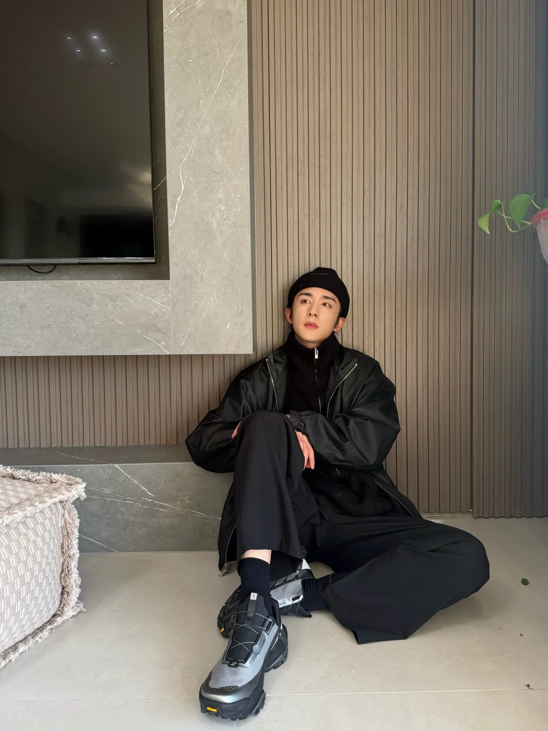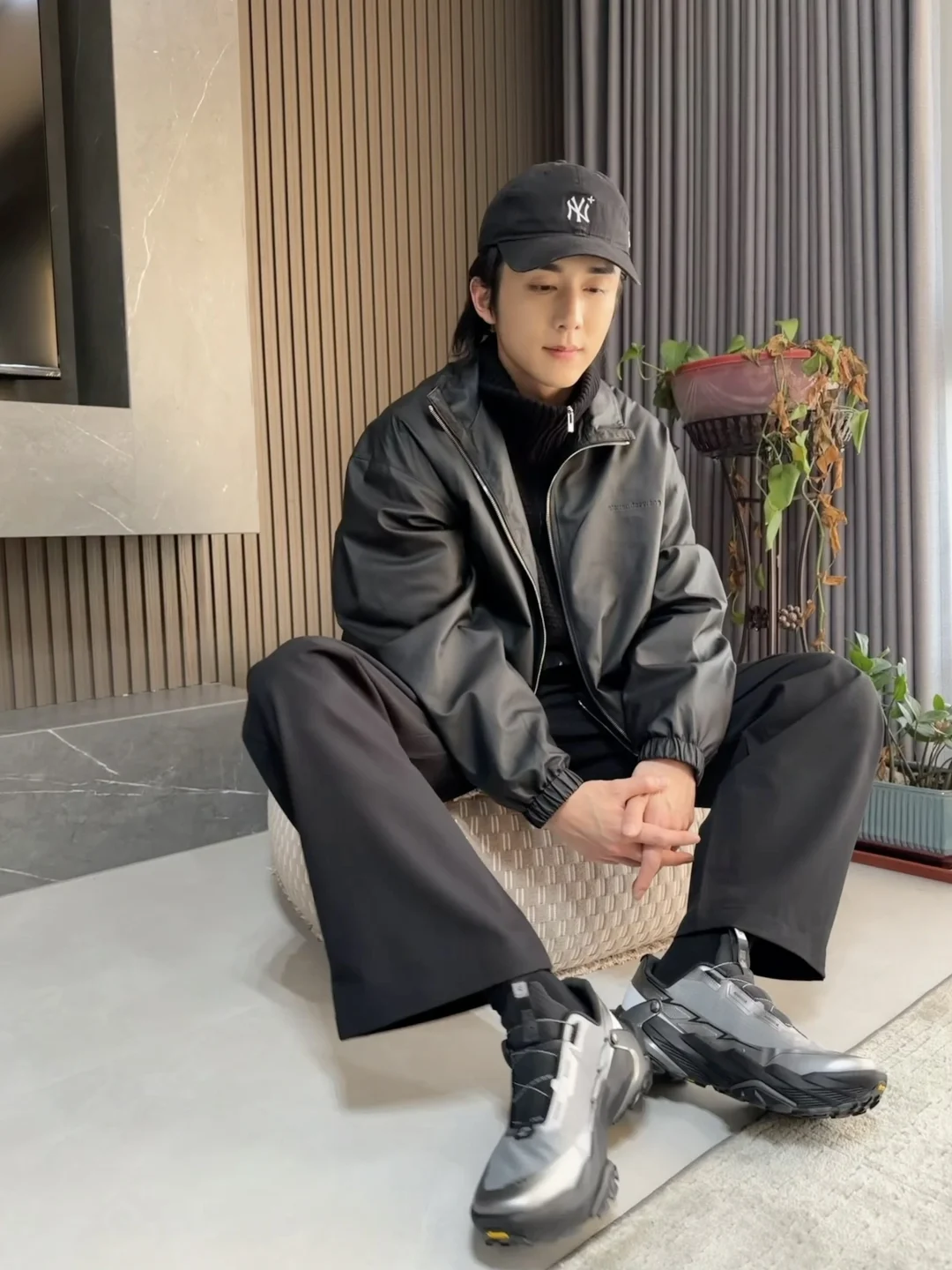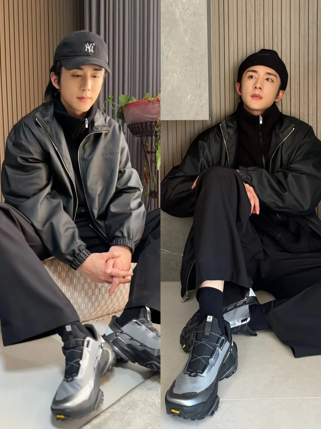 《秋雪漫过的冬天》里的陈任,那股狠劲简直演到骨子里了!没想到戏外私服的冷感气质也这么绝! Alexander wang皮衣夹克自带冷硬质感,搭配FUGA黑山跑山鞋的酷飒设计,黑灰调的碰撞直接揉出满格荷尔蒙 智性恋天菜的魅力藏都藏不住,跑山鞋的机能风细节更添几分随性的野,硬朗线条里的温柔眉眼,把时尚质感和男性魅力平衡得恰到好处,这就是跑山美学的绝佳诠释吧!