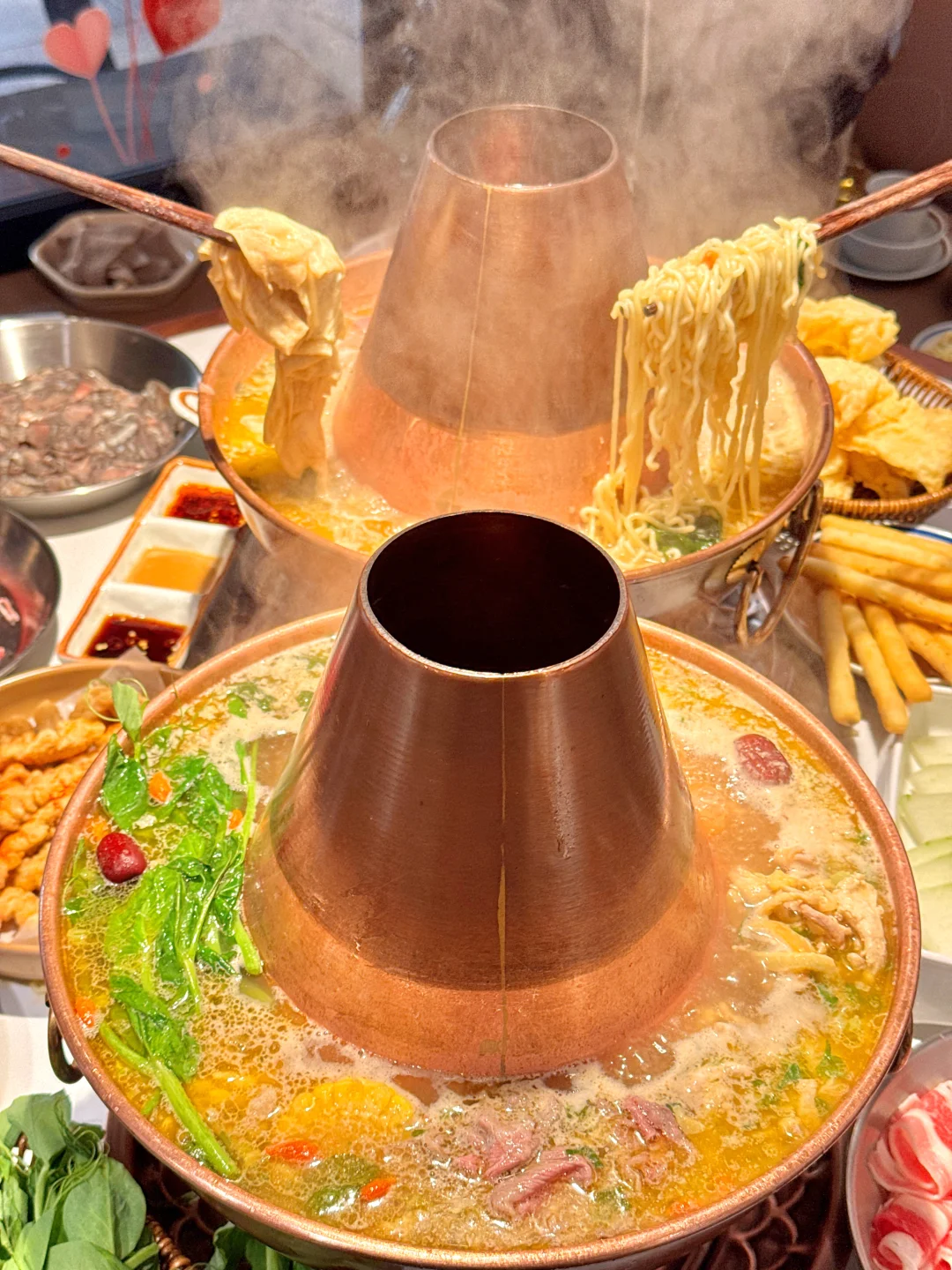 我宣布!这才是长沙鸡煲!之!神! 正宗铜锅涮鸡!!汤鲜肉嫩,看着师傅现点现切的! 锅底很鲜甜可以直接喝汤~涮鸡肉、水煮虾:蘸酱汁+小米辣!绝了!!还有冰淇淋油条、小酥肉、肥牛、虾滑等盲点了菜单都没踩雷😭😭好吃绝了!! 记住这个地址📍辣子婆婆 铜锅涮鸡!!!