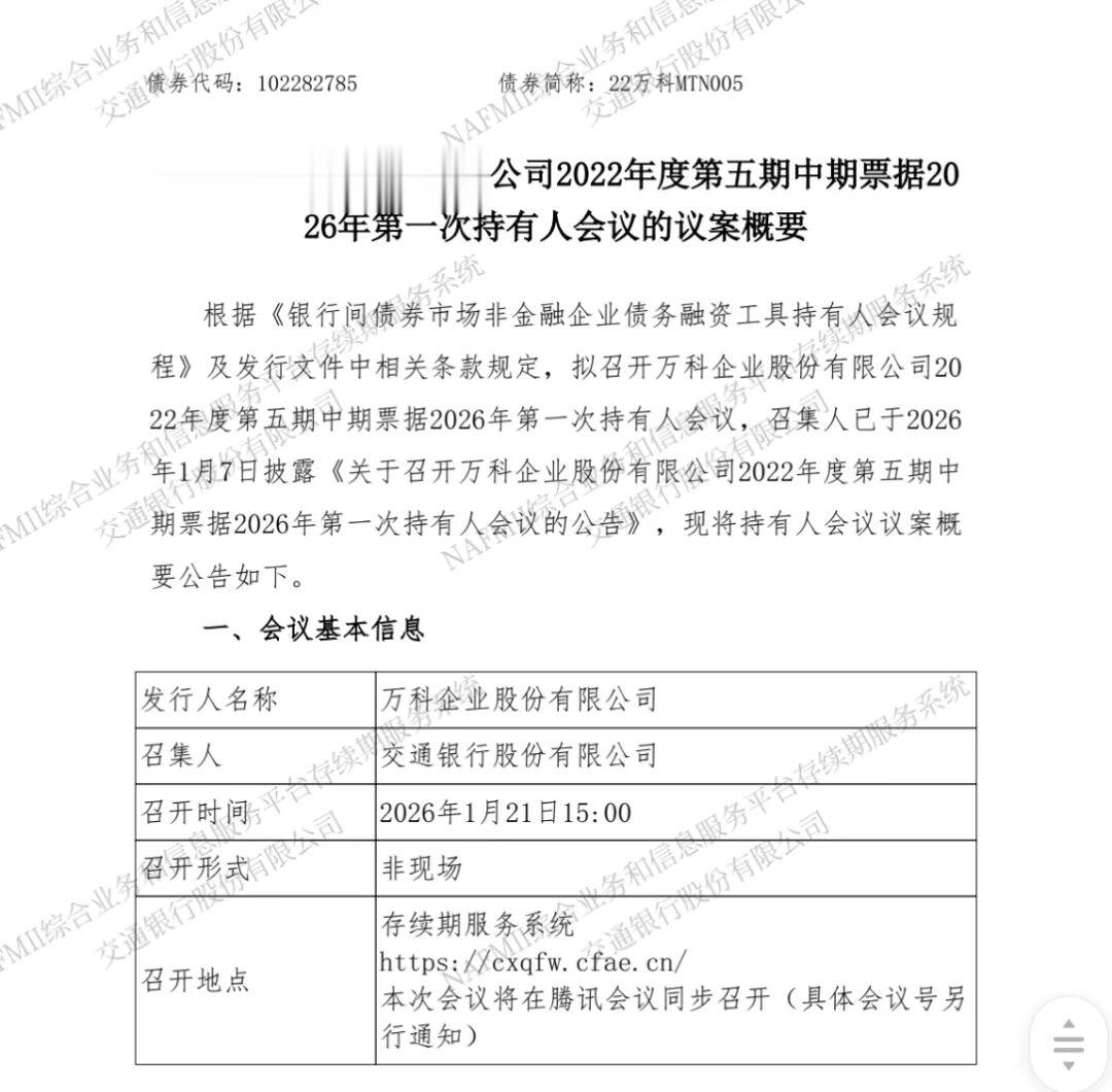 面对回售带来的集中兑付压力,万科不得不召开持有人会议,就回售部分债券的本金提出多种展期方案。