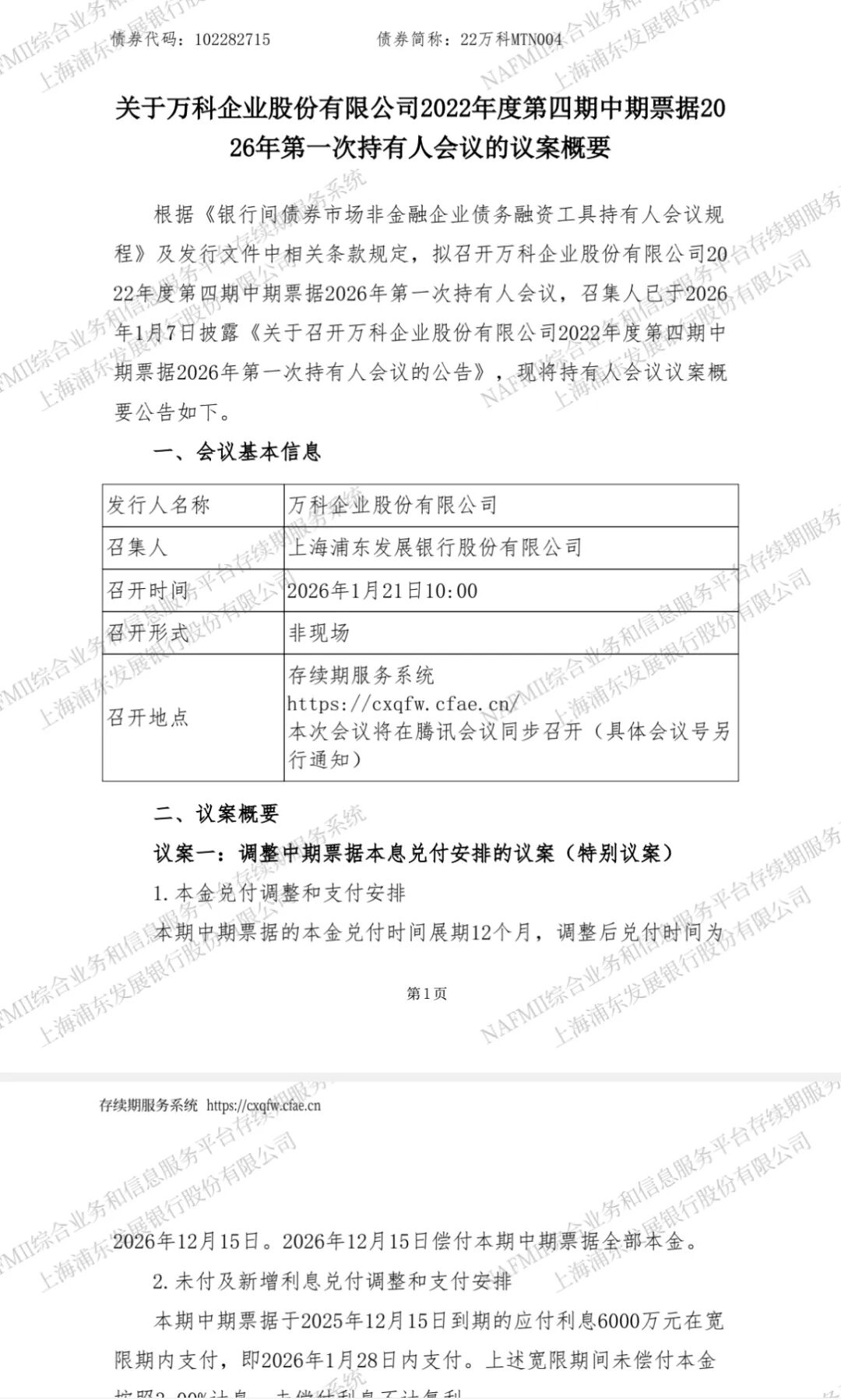 不过,在持有人会议召开之前,债券“21万科02”又新增了两项议案。